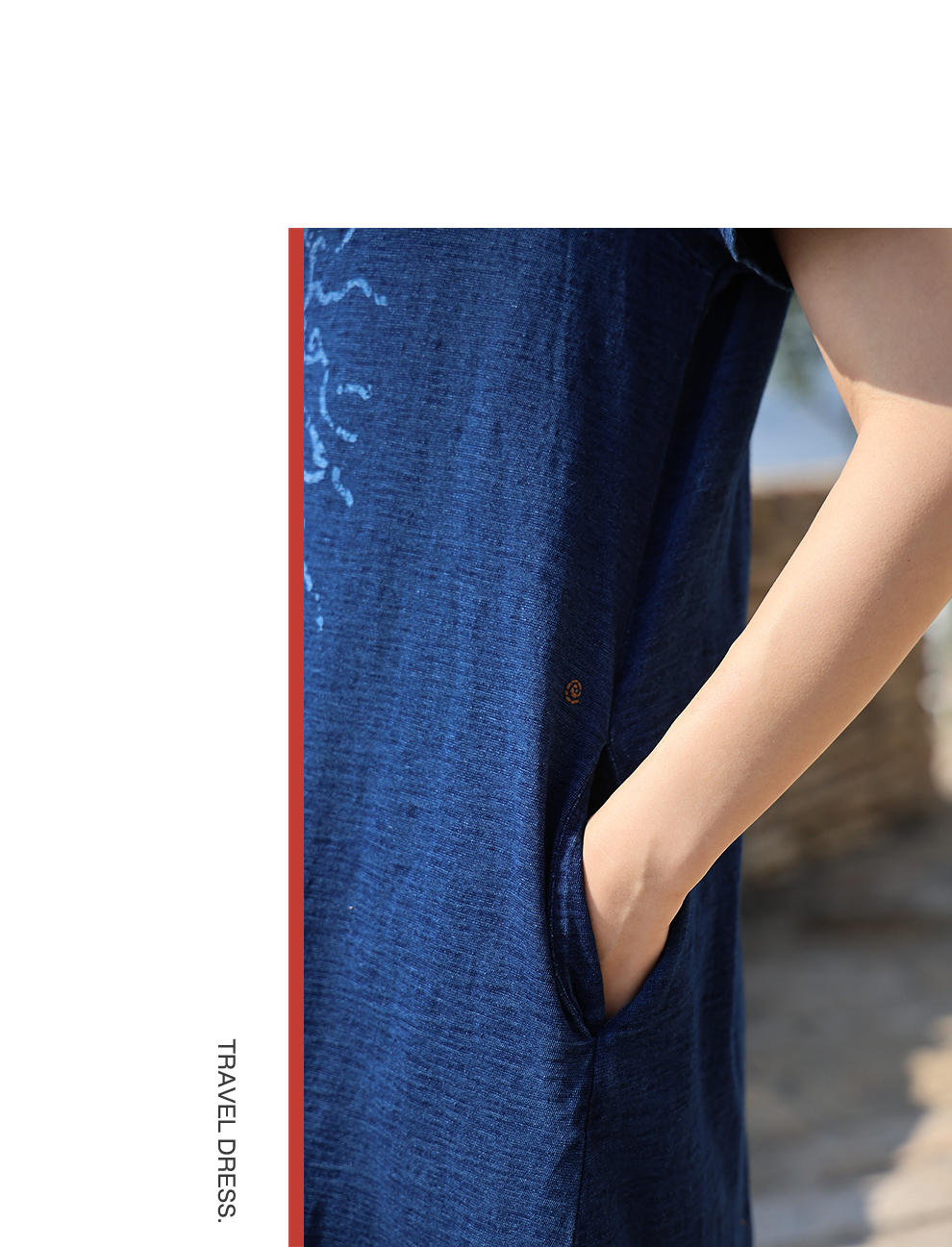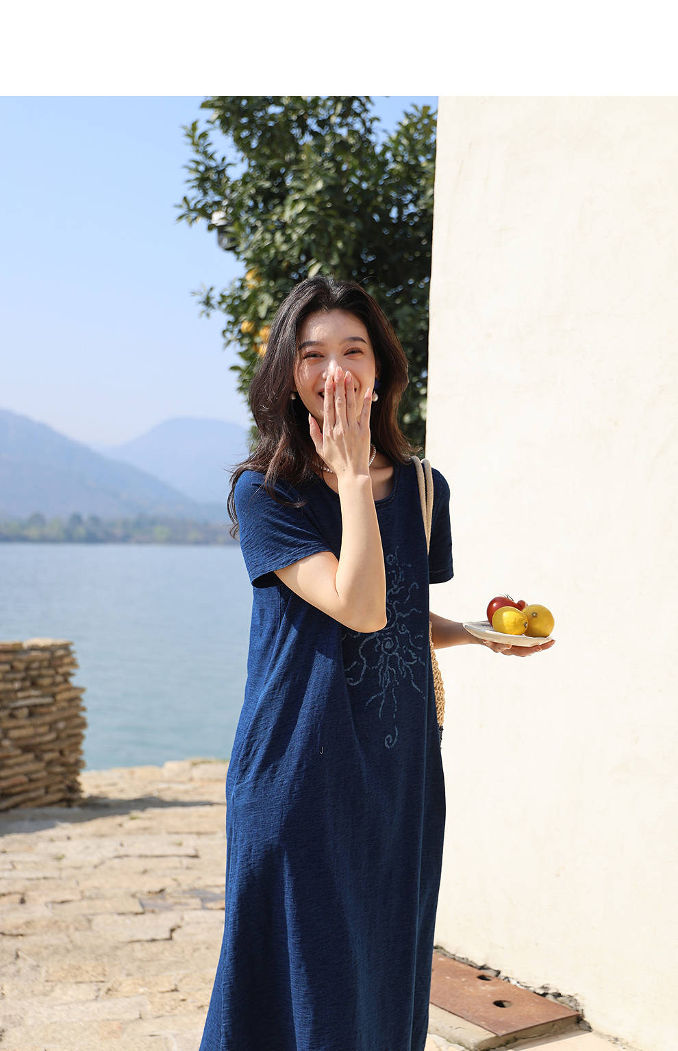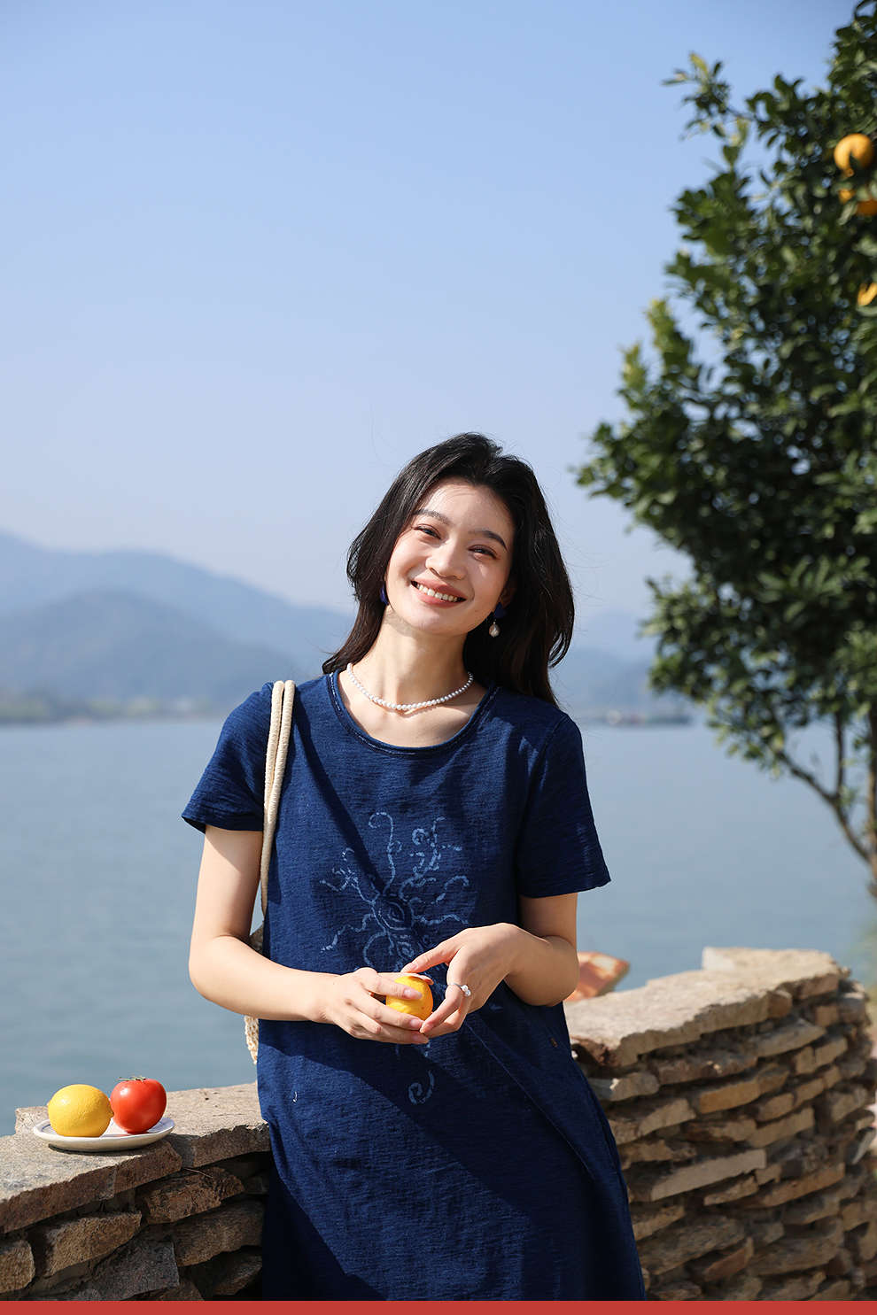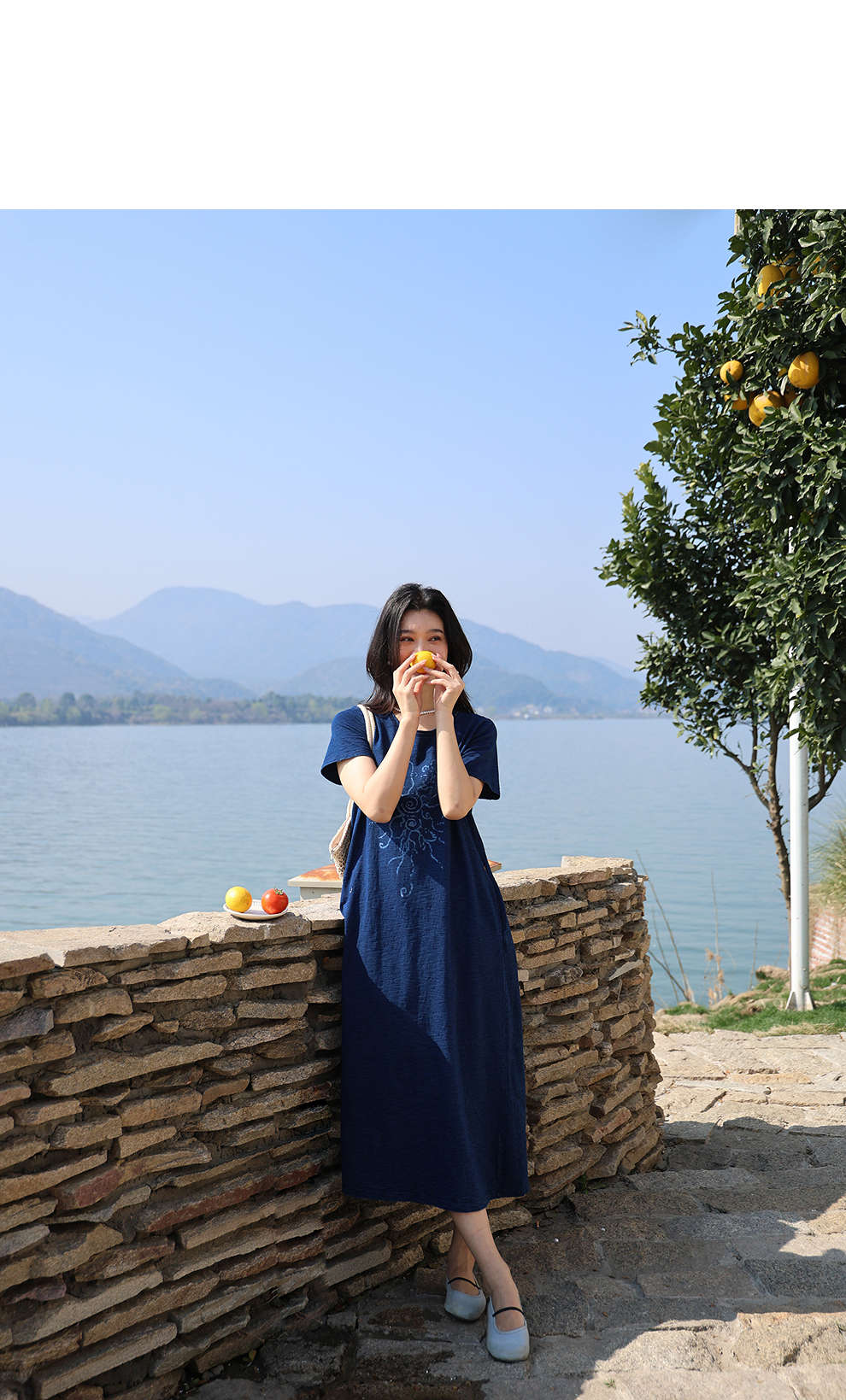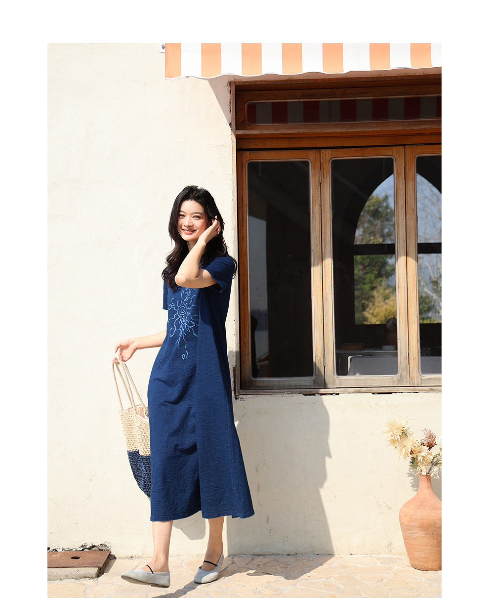 绽放旅行女装234朵/竹节棉针织手绘螺旋花短袖连衣裙舒适透气百搭