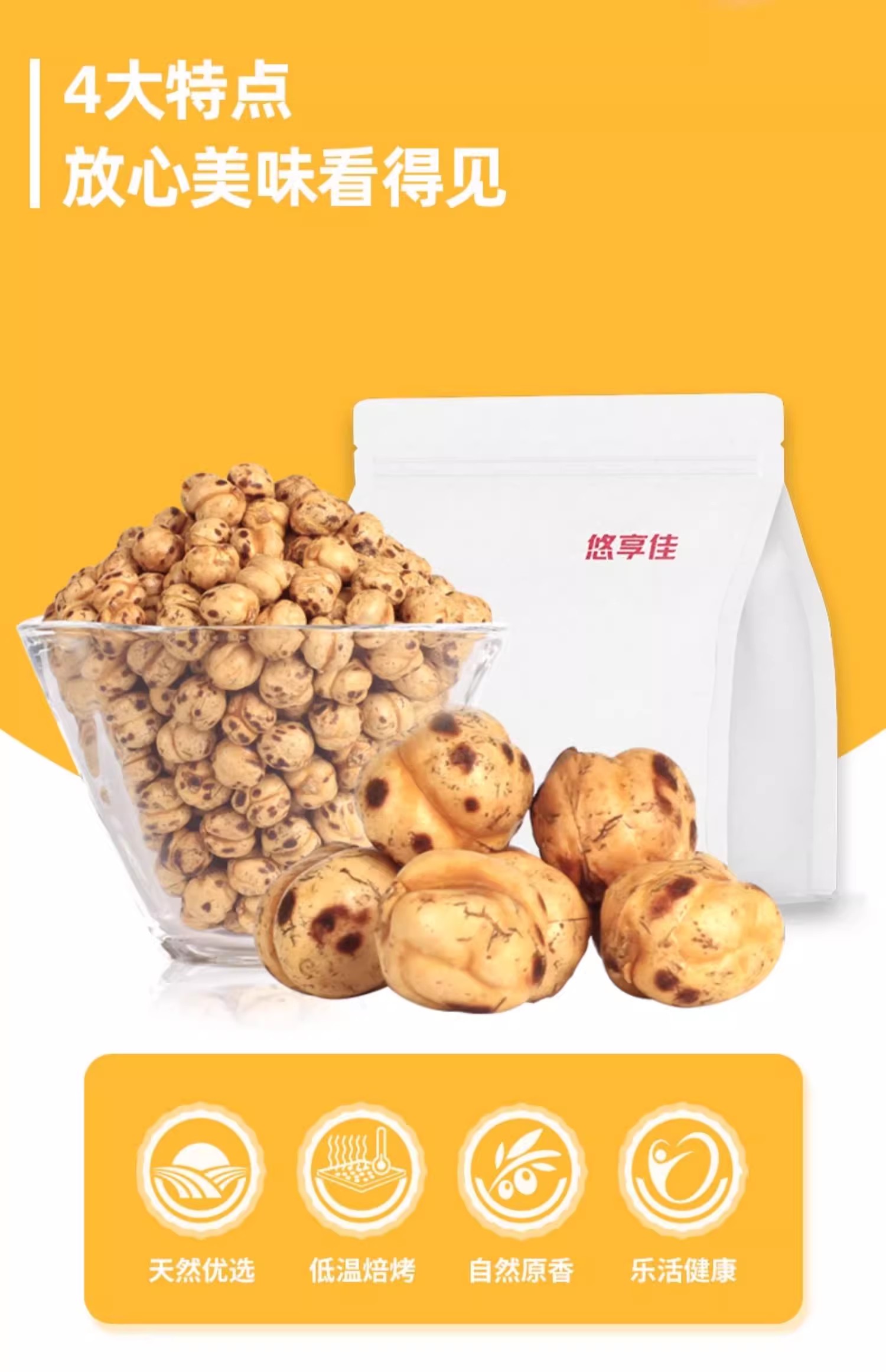 【悠享佳】悠享佳巴旦木仁500g原味盐焗孕妇零食扁桃仁烘焙烤炒货生熟干坚果
