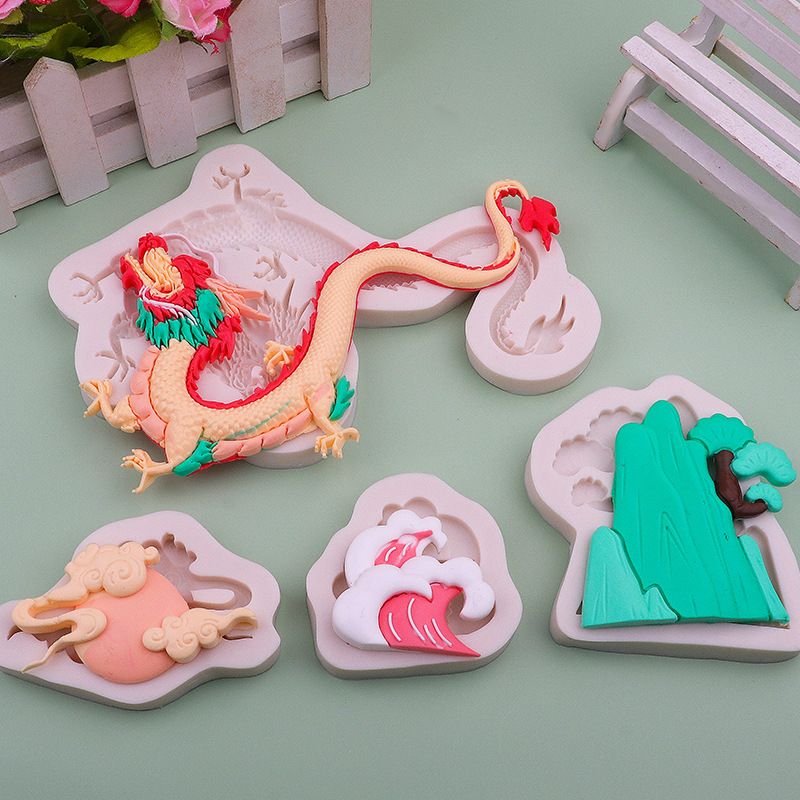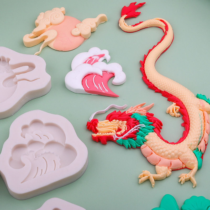 新年龙年系列翻糖蛋糕装饰硅胶模具 DIY祥云浪花巧克力甜品摆件模