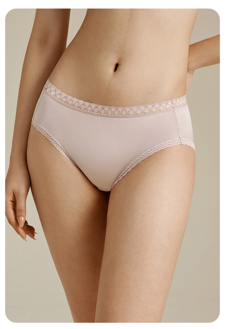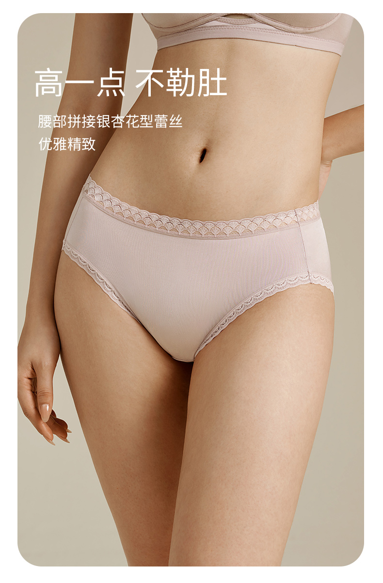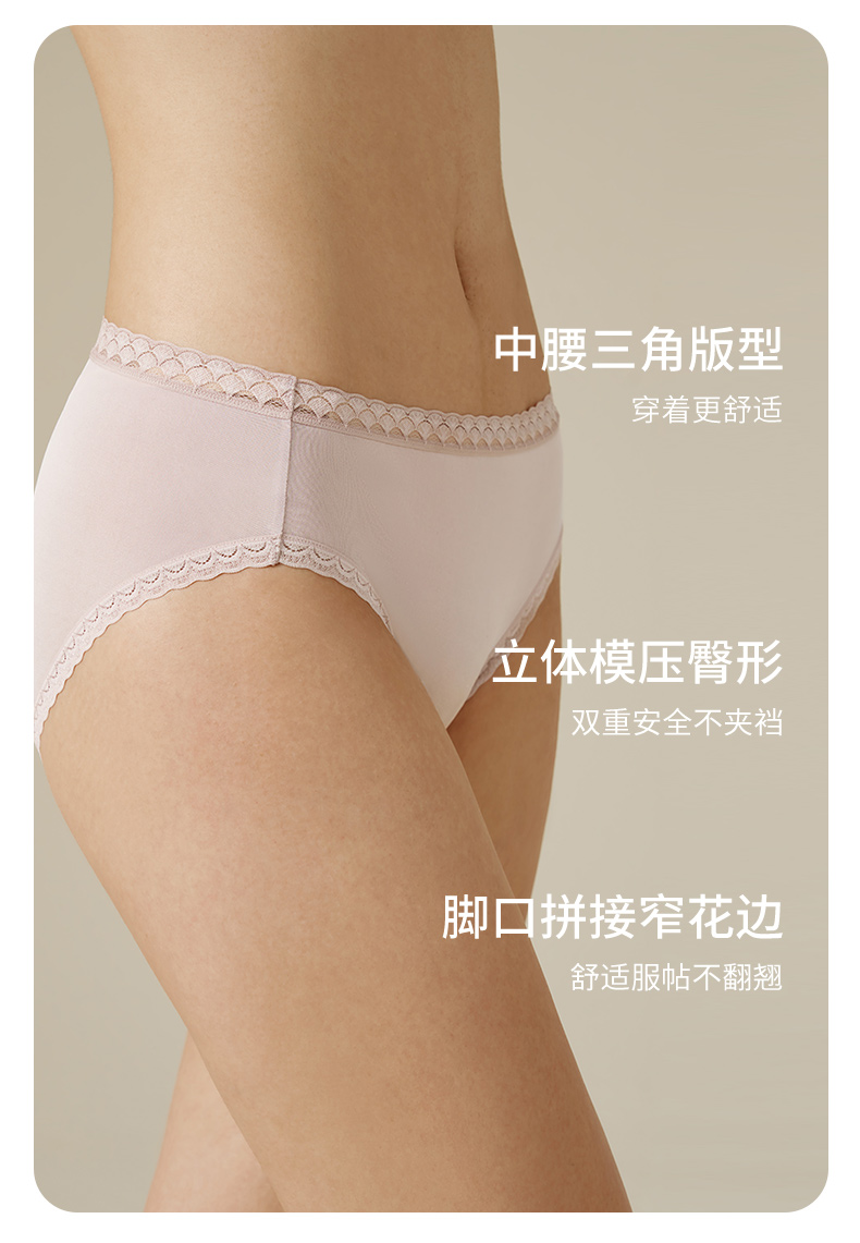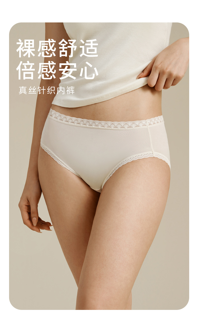 【桑蚕丝抗菌】金三塔中腰纯色内裤女裸感舒适透气蕾丝边三角裤内衣(私密物品不支持退换) NZFEC203