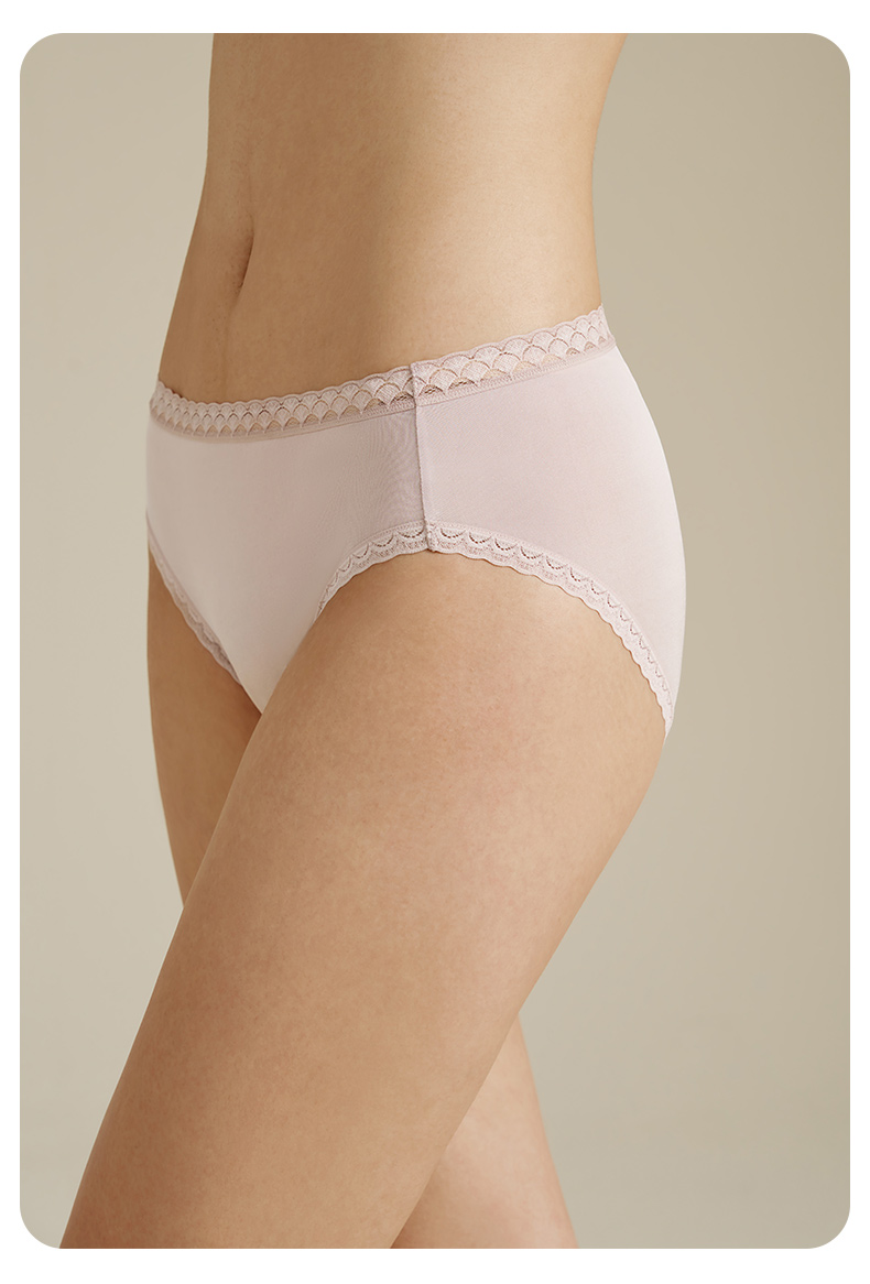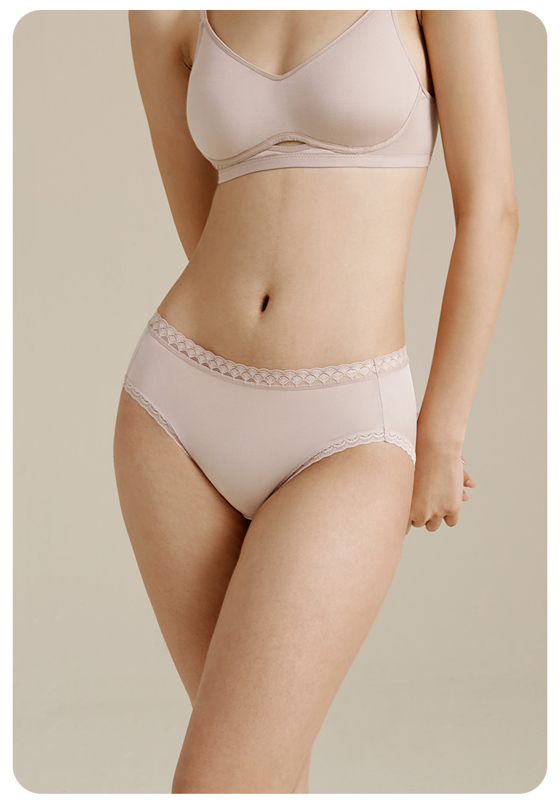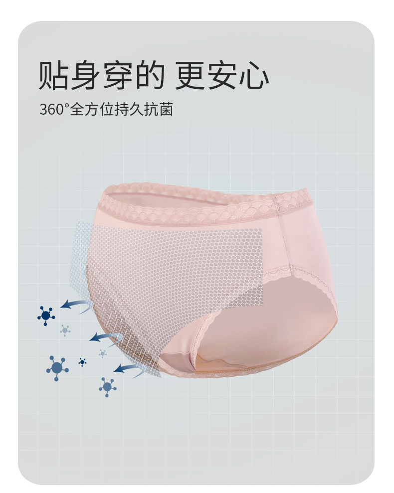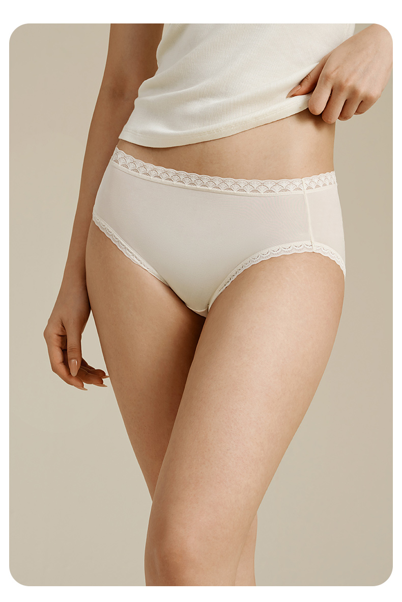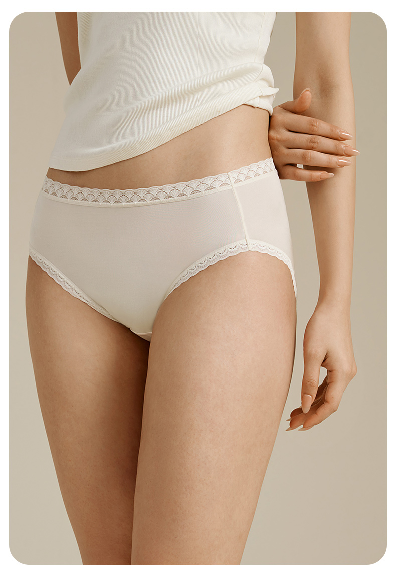 【桑蚕丝抗菌】金三塔中腰纯色内裤女裸感舒适透气蕾丝边三角裤内衣(私密物品不支持退换) NZFEC203