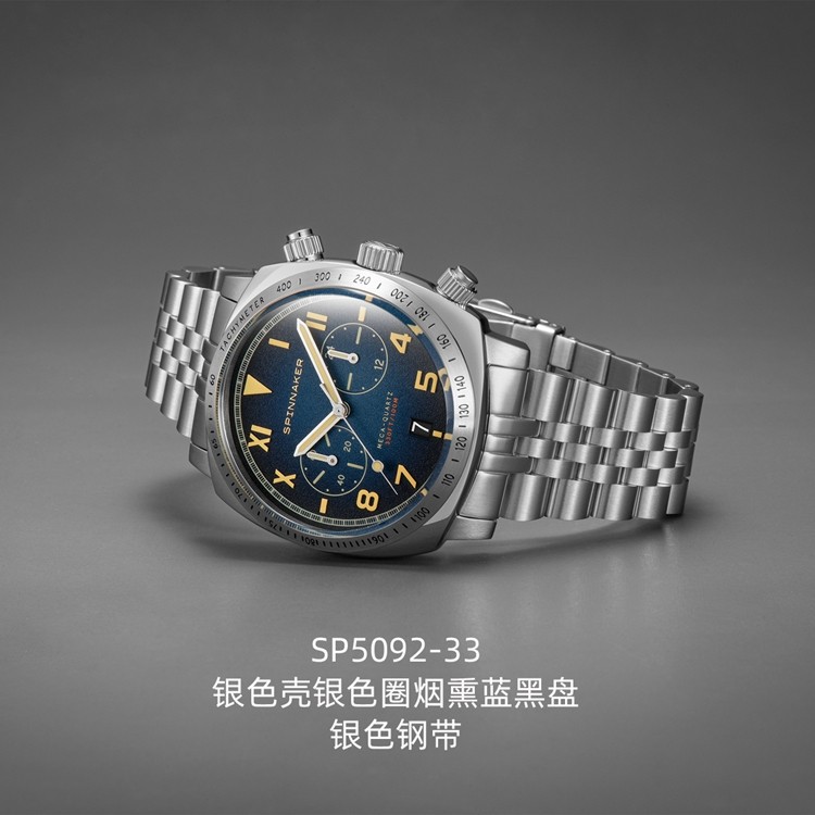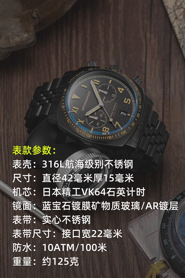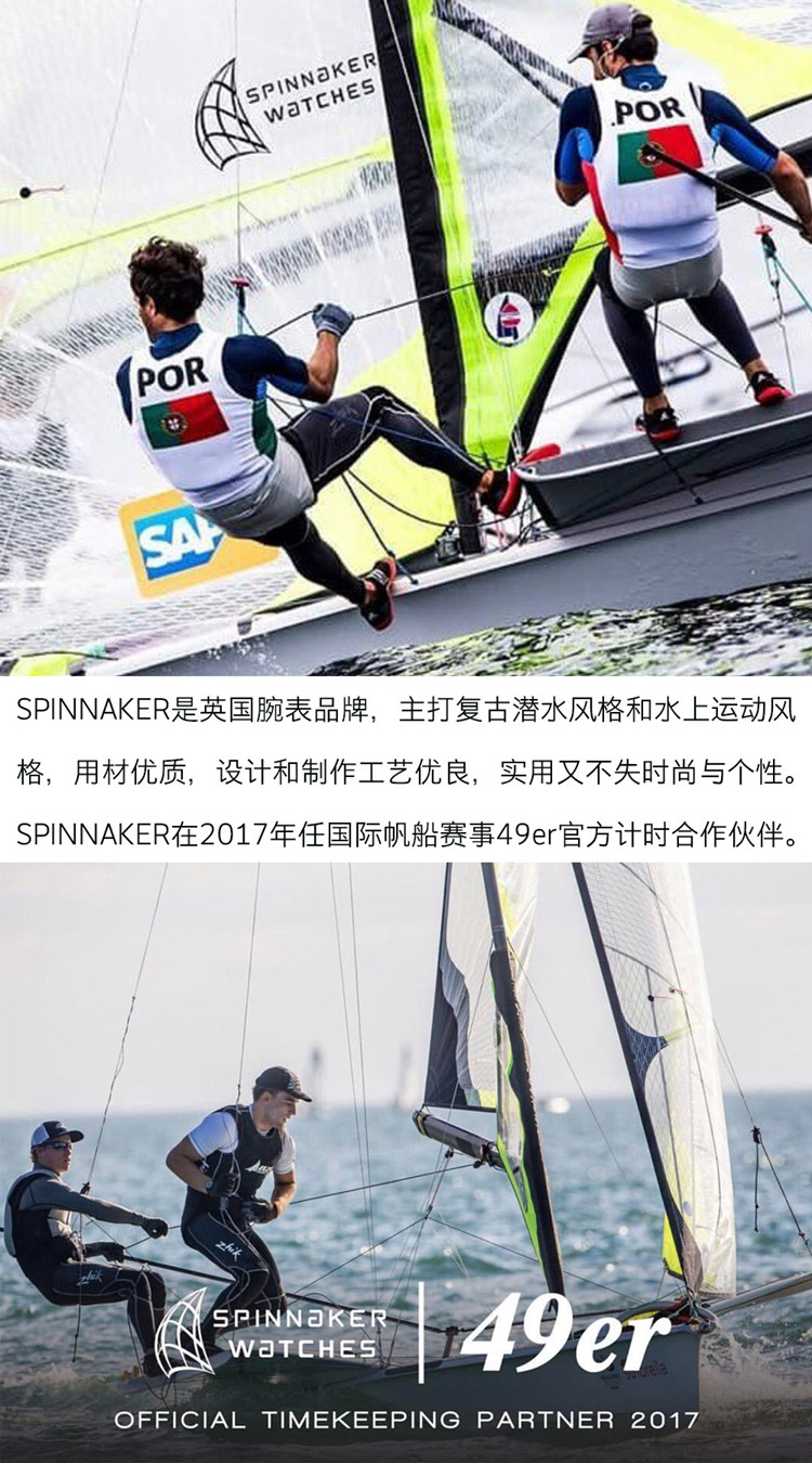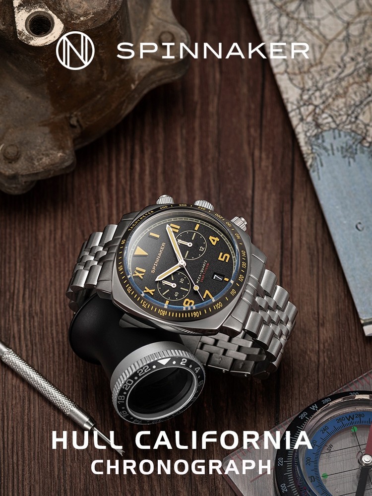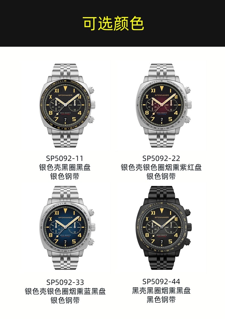英国SPINNAKER三角帆HULL石英计时男士手表加州盘面夜光防水钢带