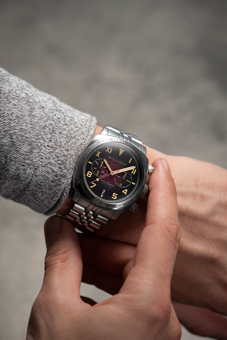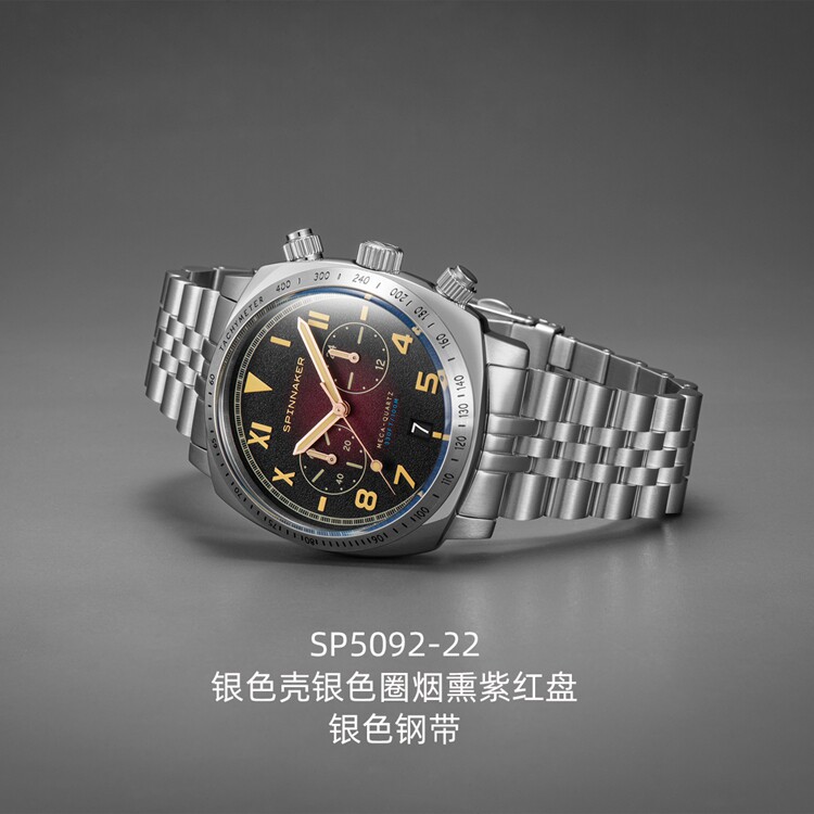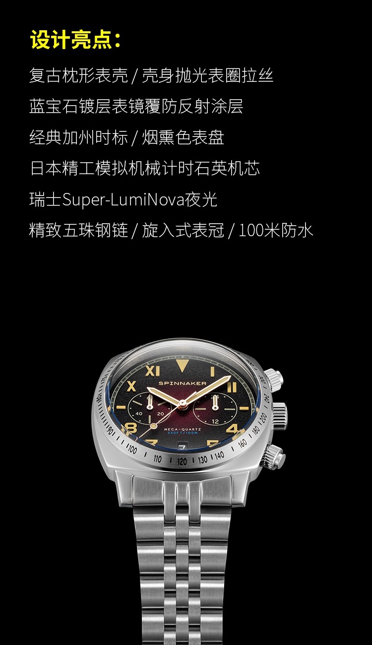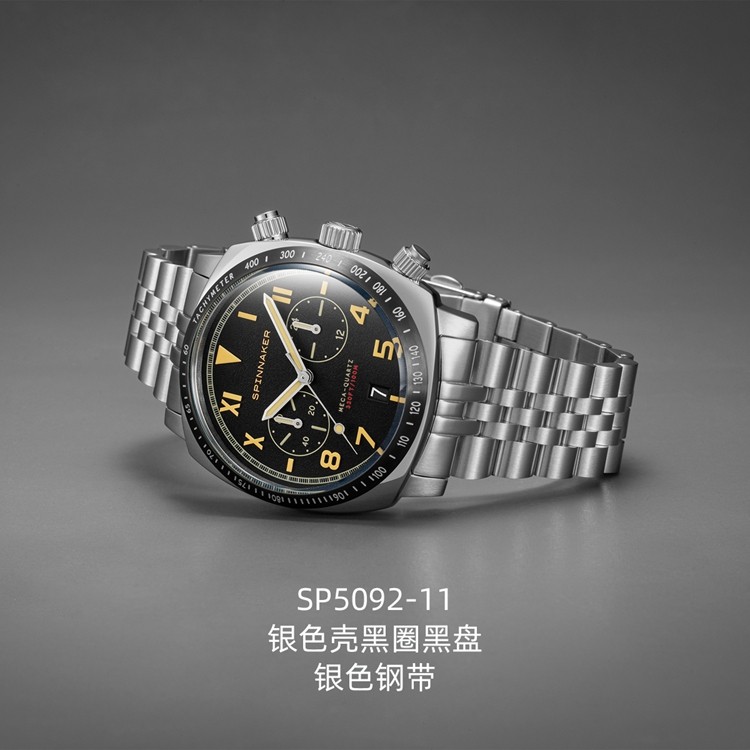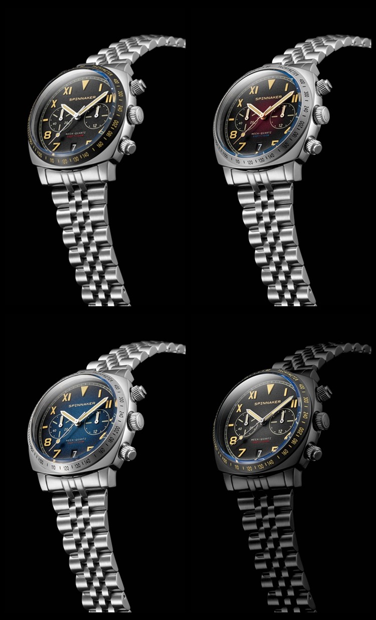 英国SPINNAKER三角帆HULL石英计时男士手表加州盘面夜光防水钢带