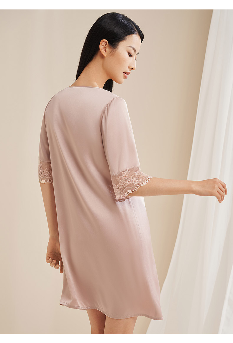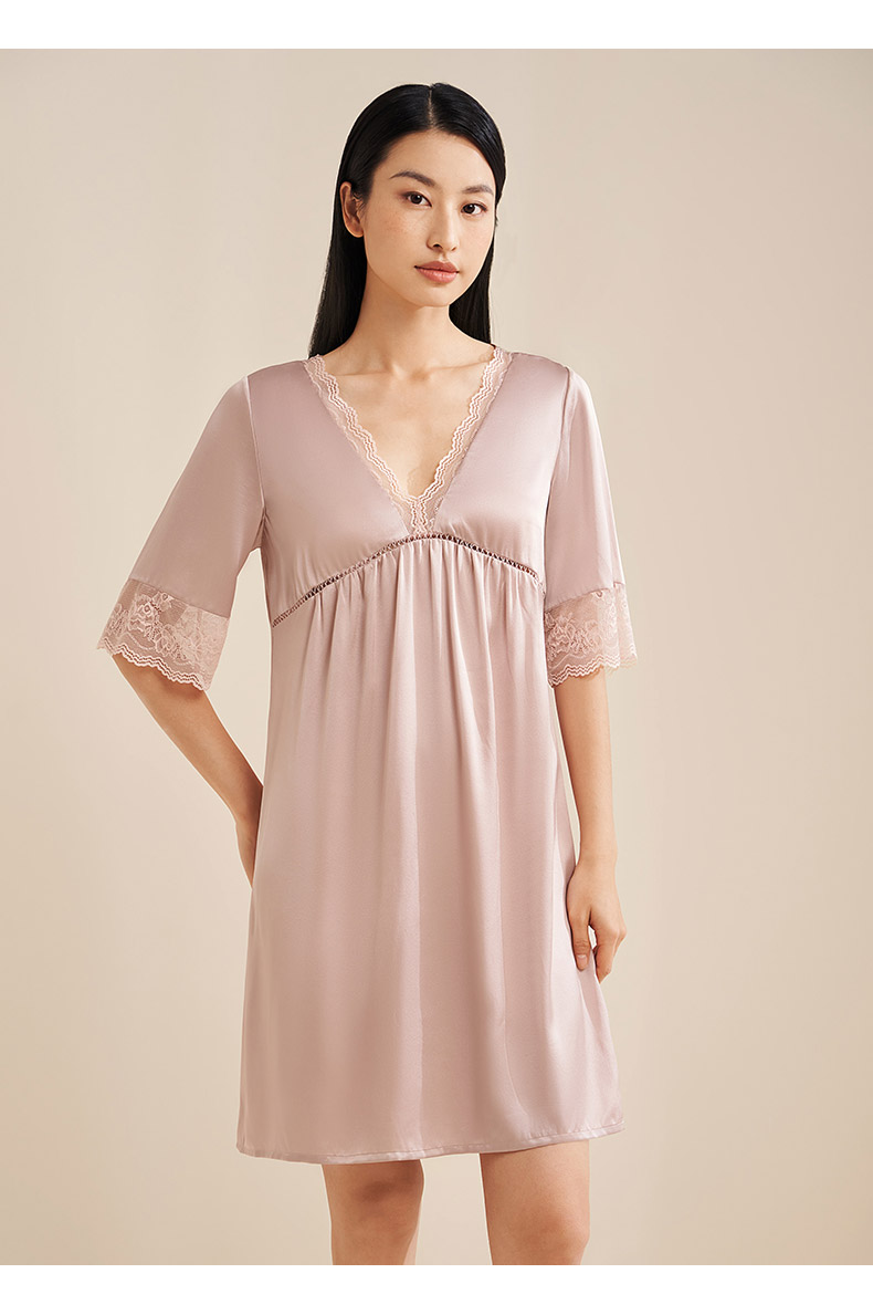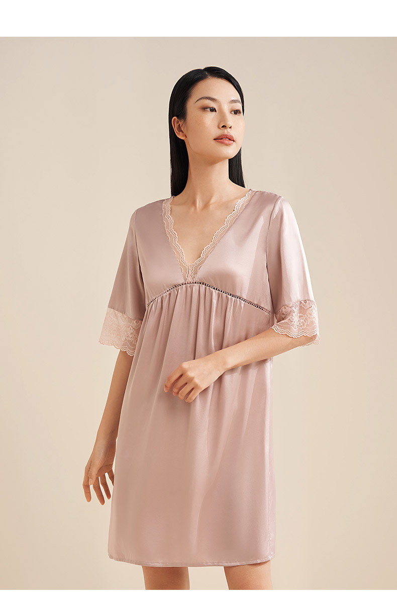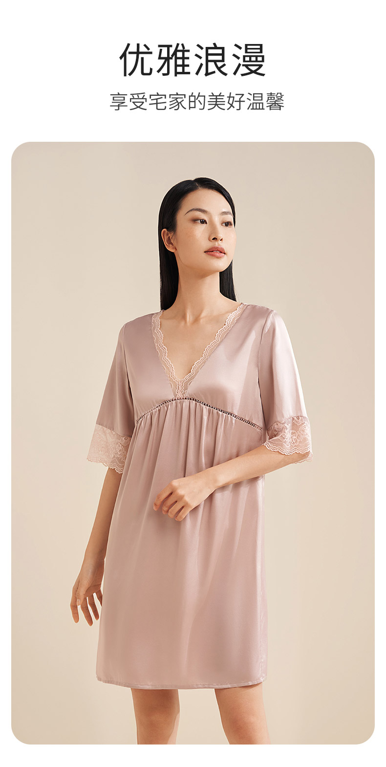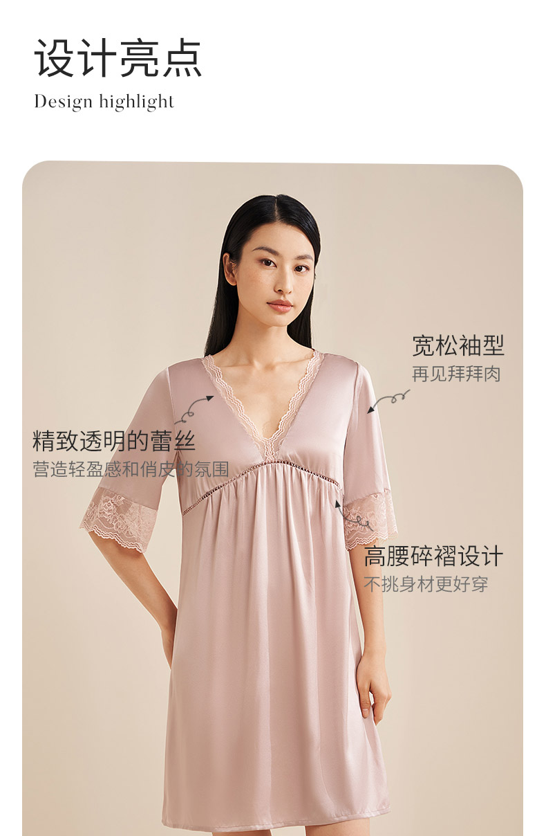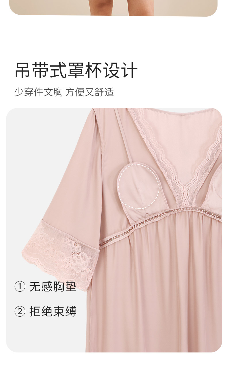 金三塔女真丝蕾丝拼接带杯睡裙新品(限价款)YSFEA314