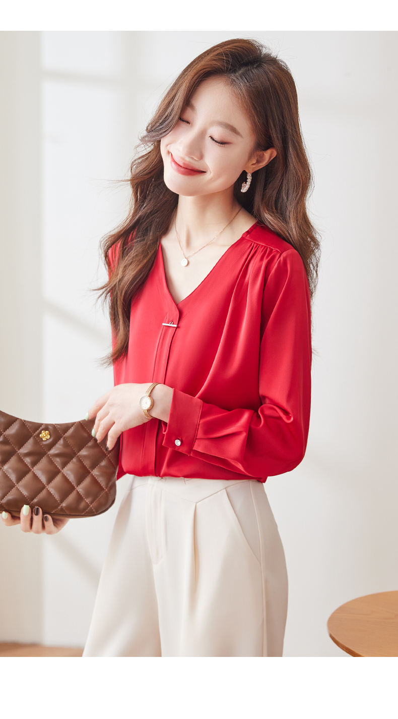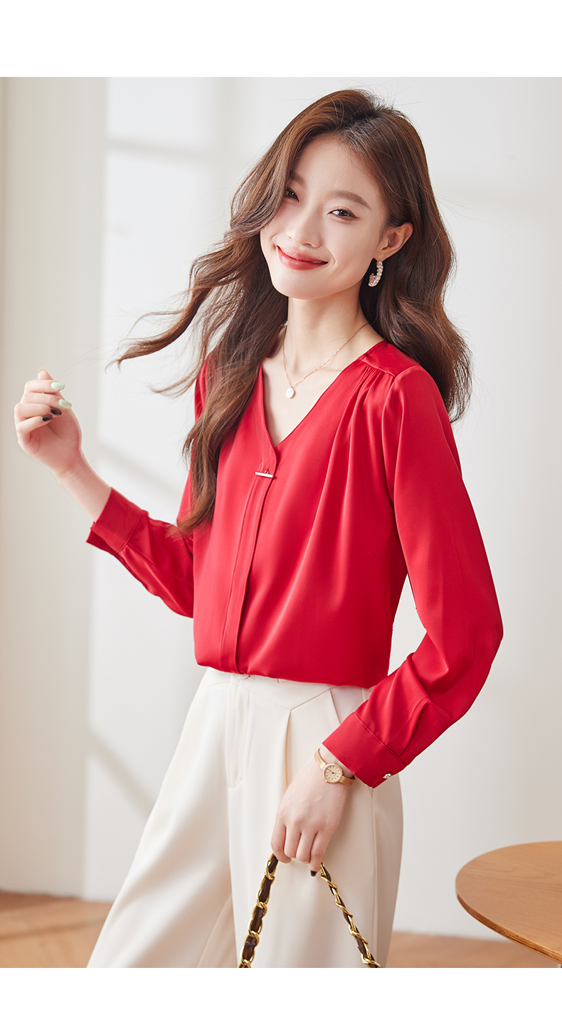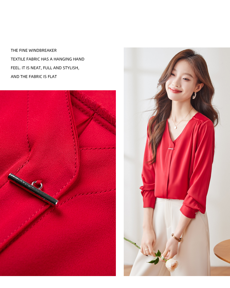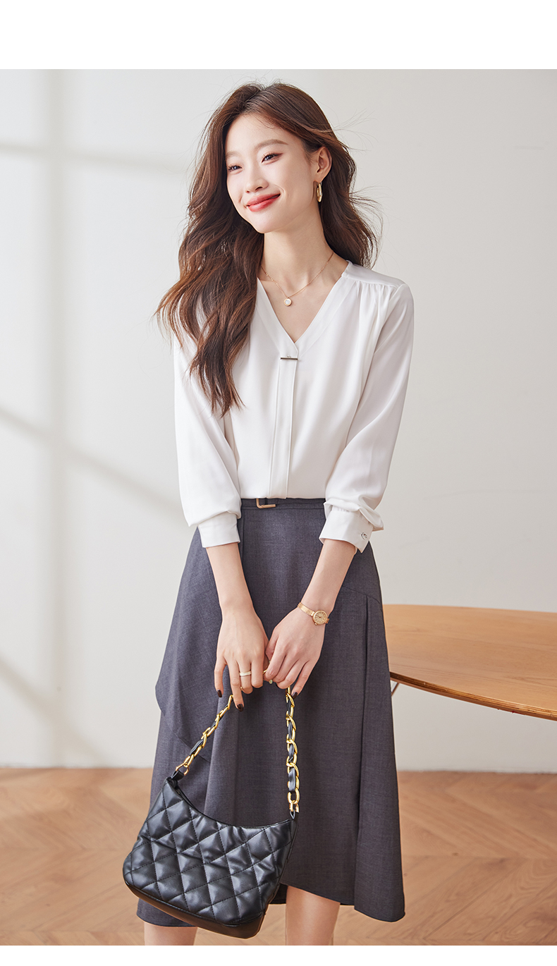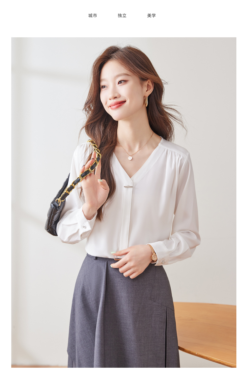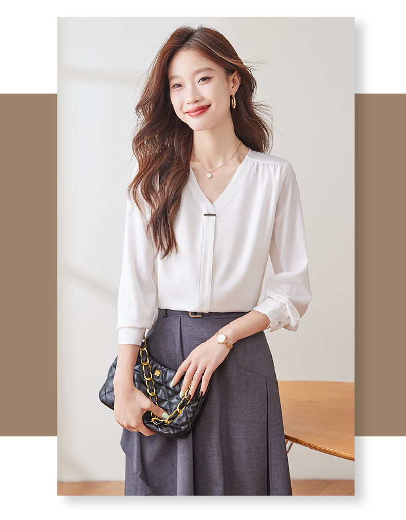 Q157新款长袖通勤气质衬衣白色洋气时尚百搭小众设计感宽松衬衫