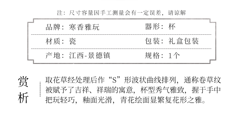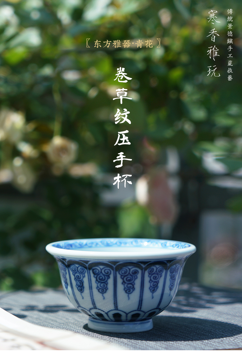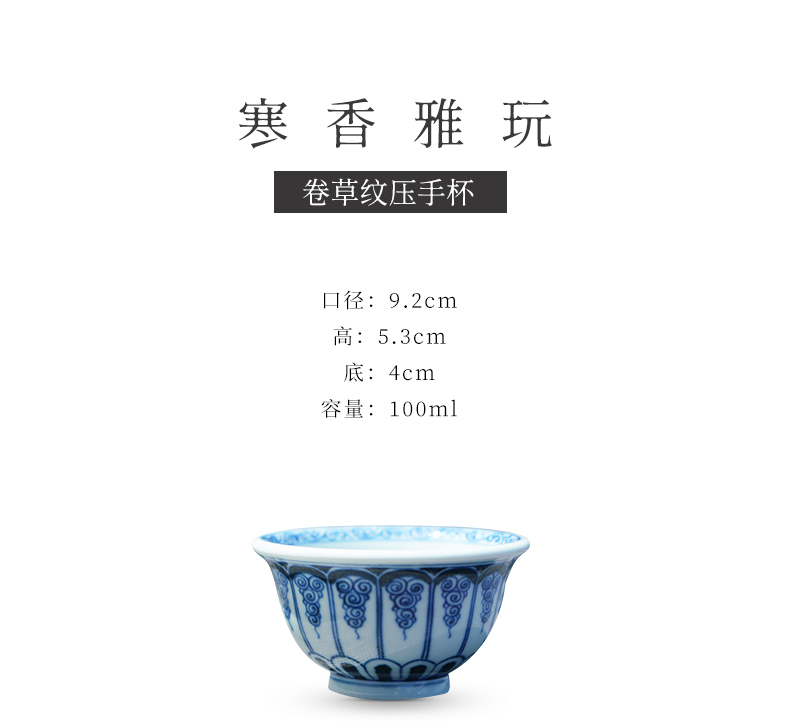 寒香雅玩青花卷草纹压手杯(缺货)