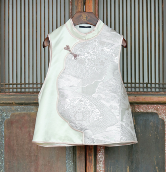 盛唐牡丹盛奢系列 | 西阵织拼丝毛花瓣领马甲