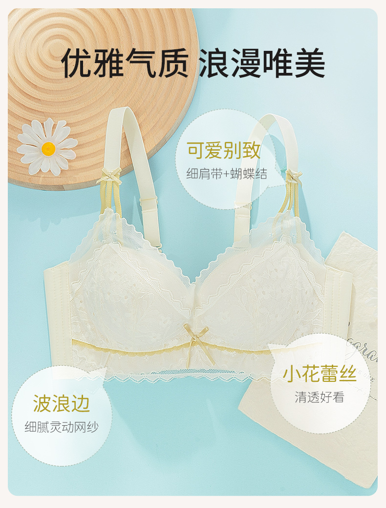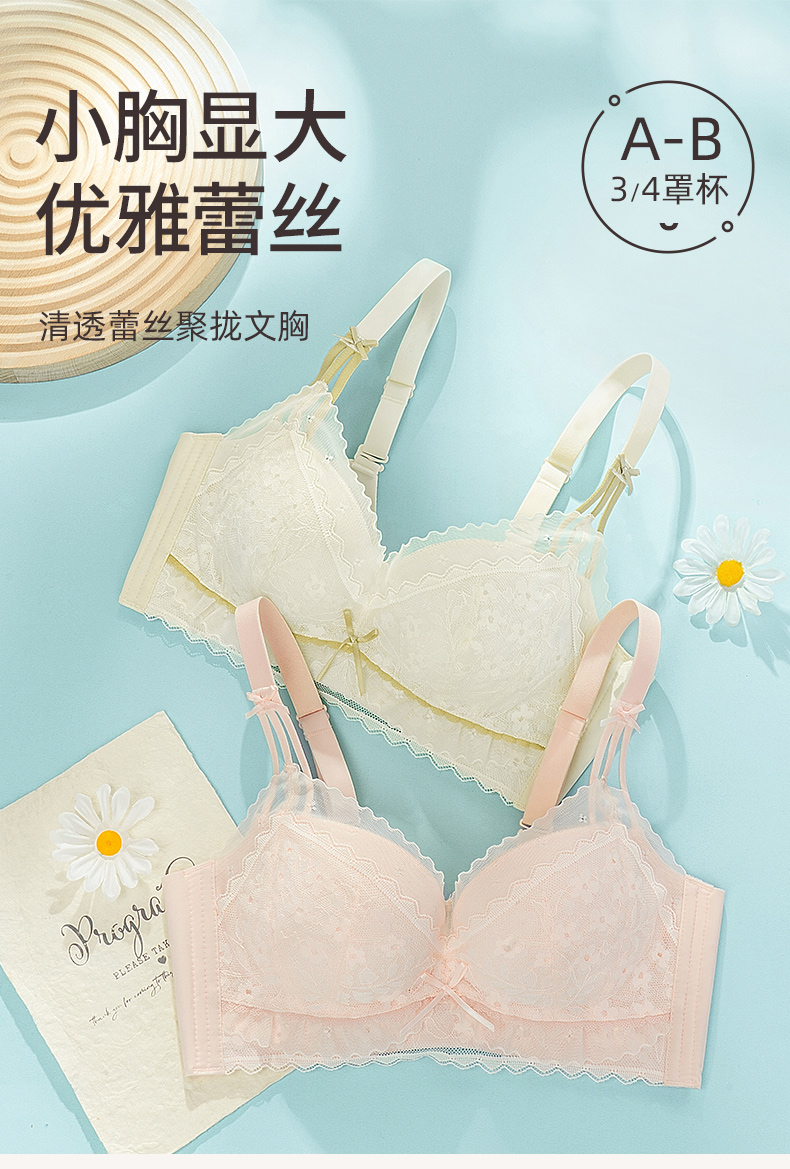 雅黛俪内衣女小胸聚拢莫代尔蕾丝文胸无钢圈2023新款美背胸罩