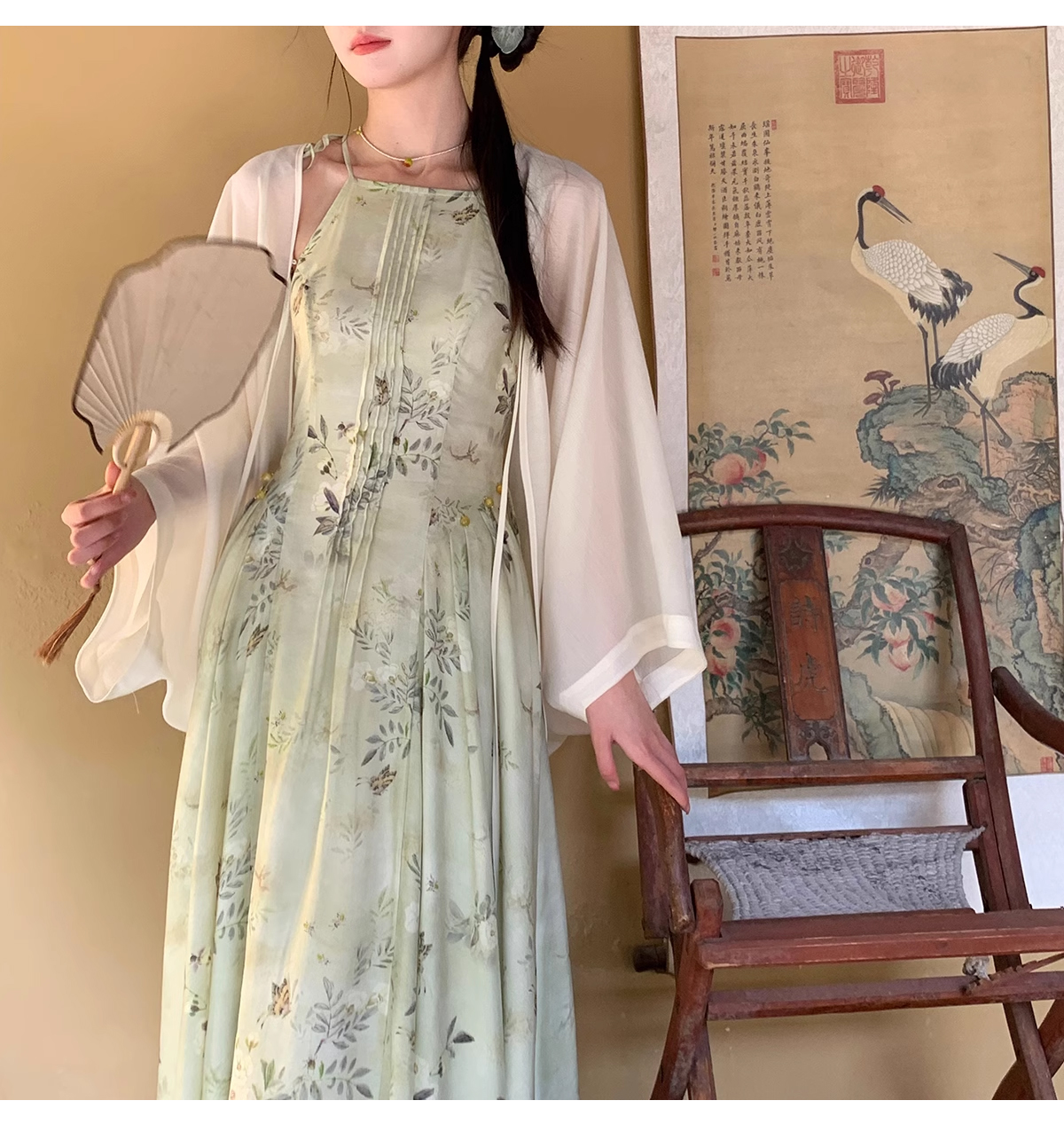 裁缝学苑AQ302新中式复古国风打褶吊带连衣裙纸样衬衫插肩袖打版裁剪