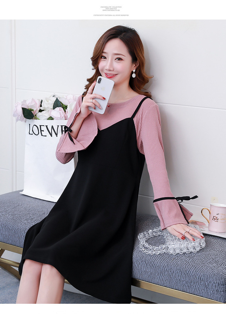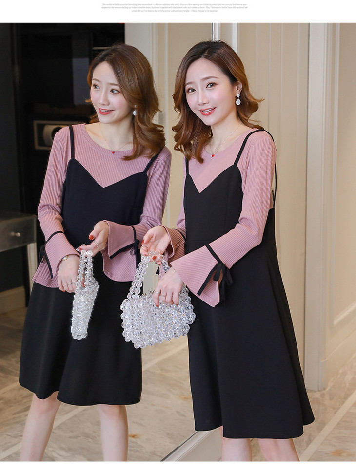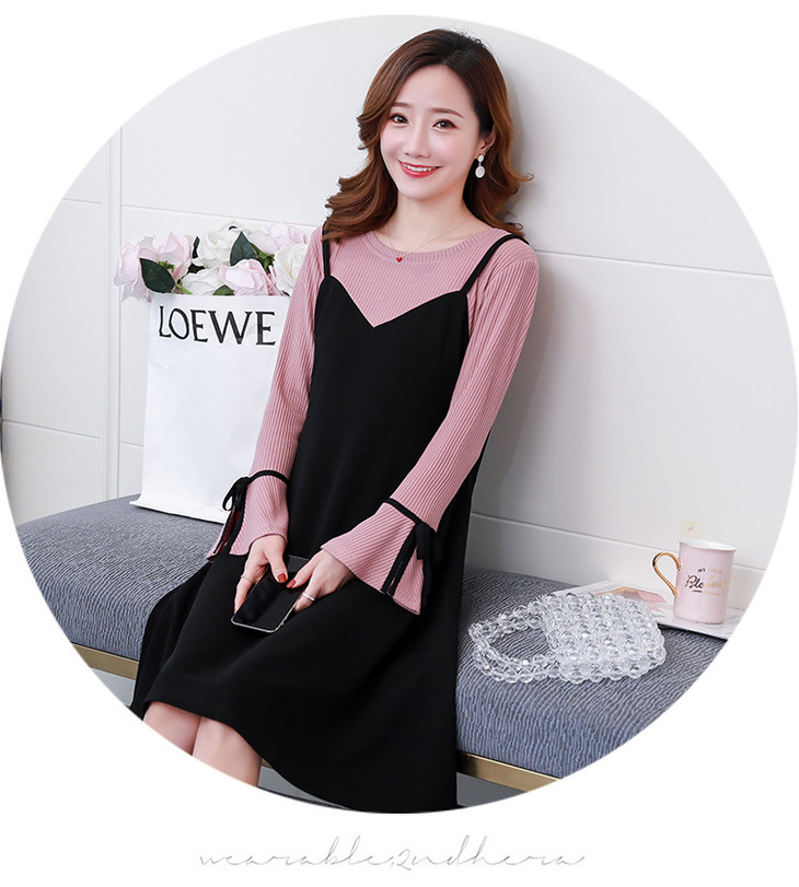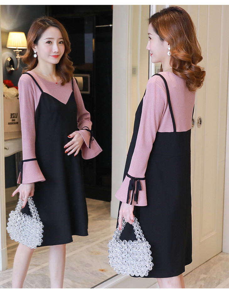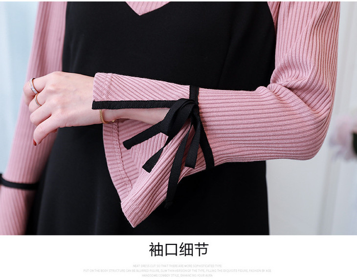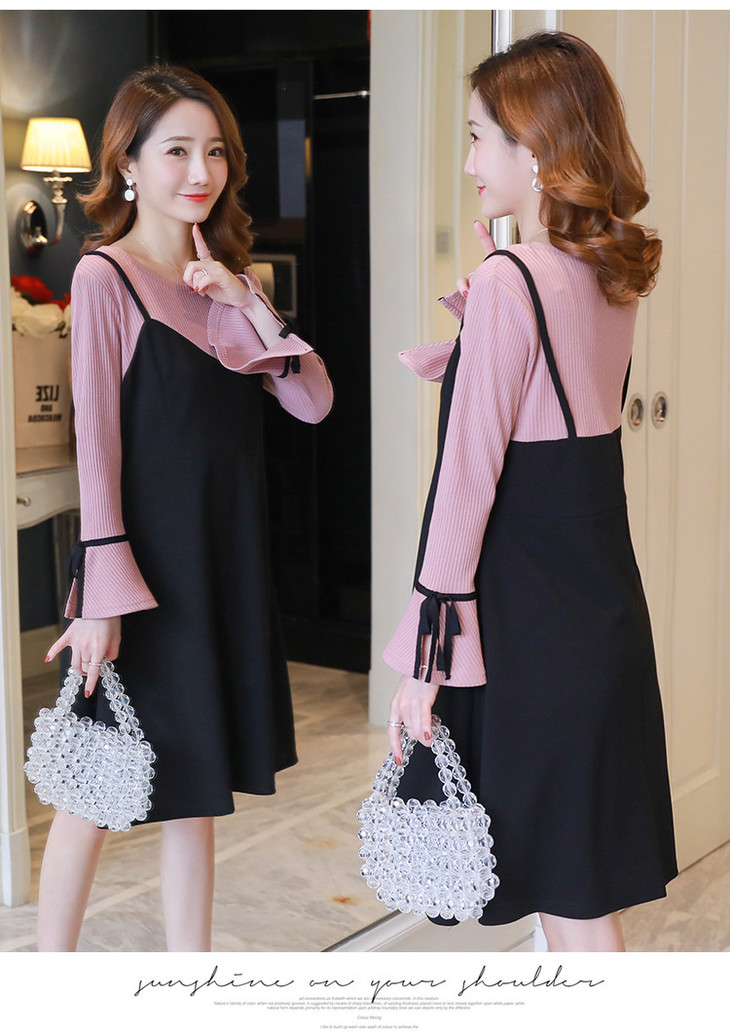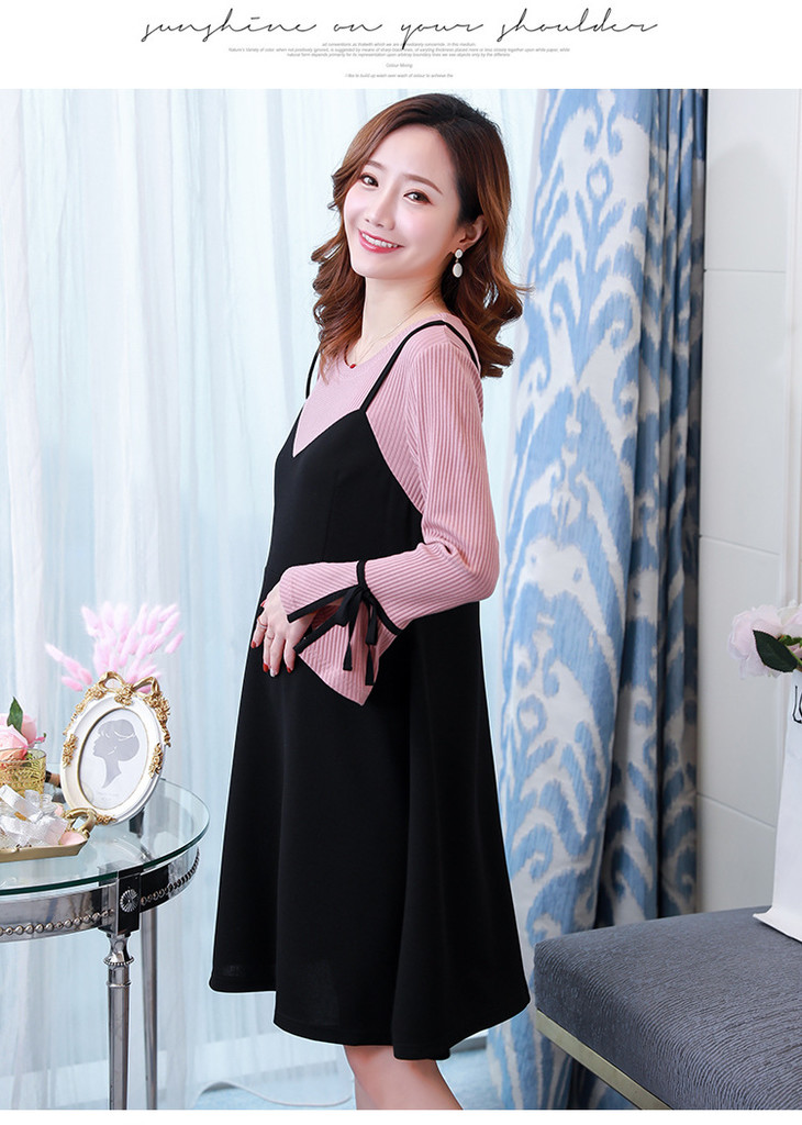 【孕妇装】春秋新款孕妇时尚长袖假两件拼接中长款孕妇连衣裙