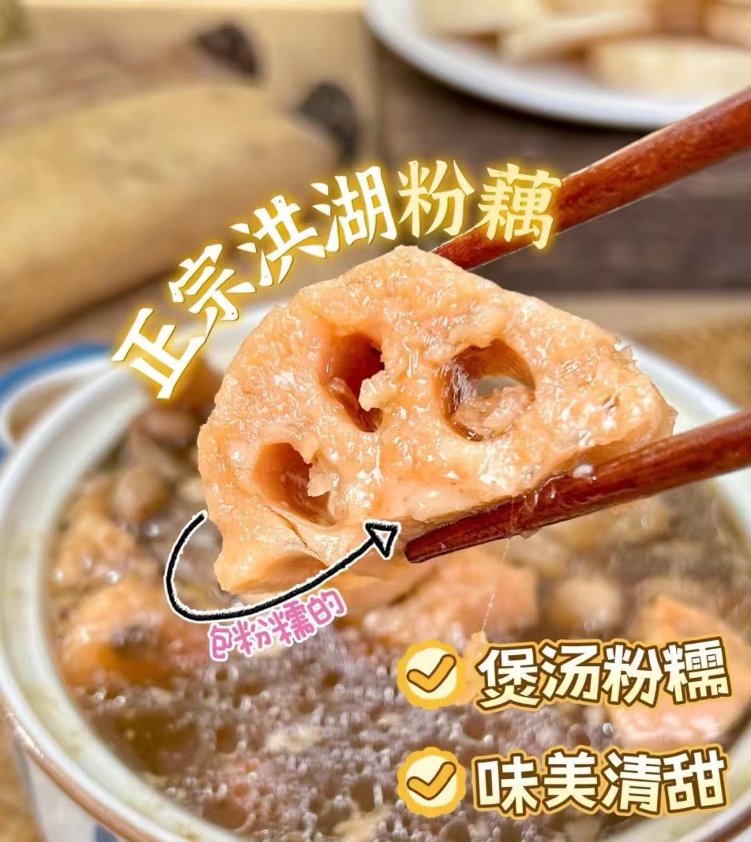 - 营养价值:洪湖湖藕中富含铁、钙等微量元素,植物蛋白质、维生素以及淀粉含量也很丰富,有明显的补益气血、增强人体免疫力作用。