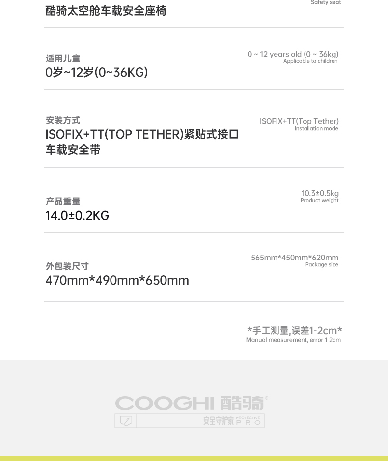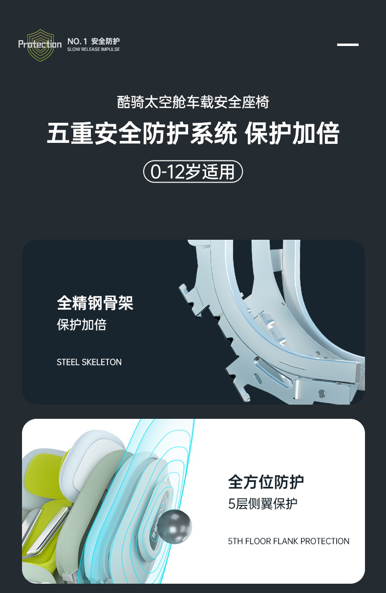COOGHI酷骑太空舱儿童安全座椅0-12岁汽车椅可坐躺