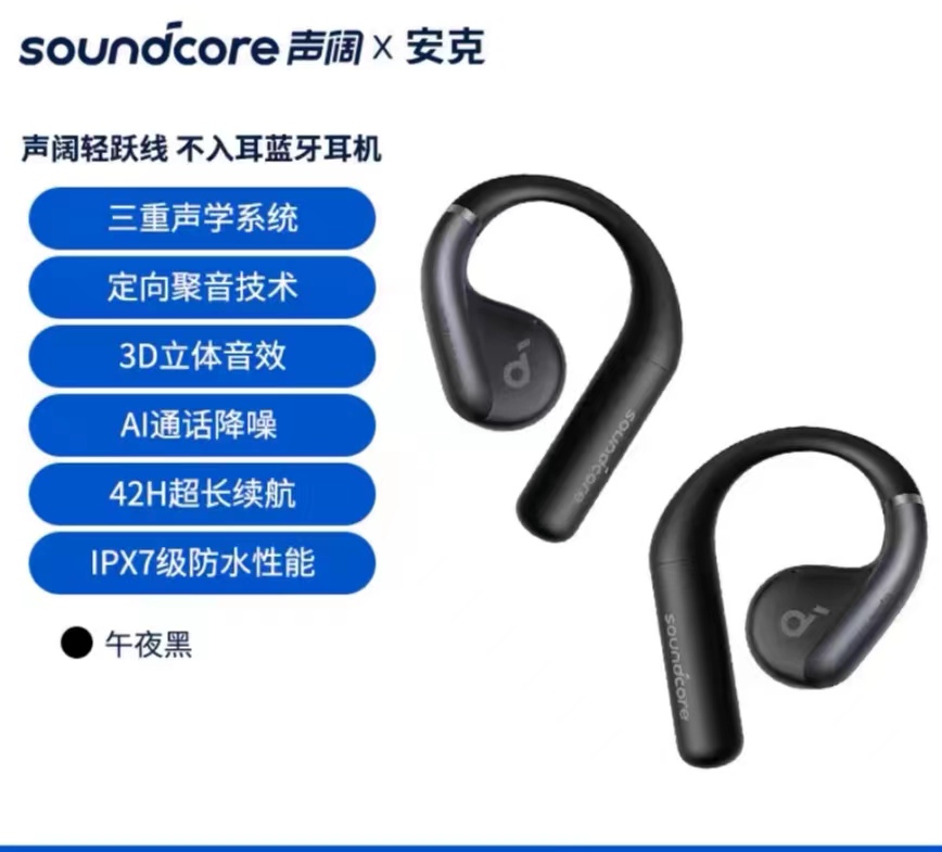 【云粉节】【8.3折】7楼鼎易数码 声阔轻跃线云感不入耳蓝牙耳机AeroFit开放舒适佩戴42H续航无线日常办公运动跑步不漏音 吊牌价899,活动价749