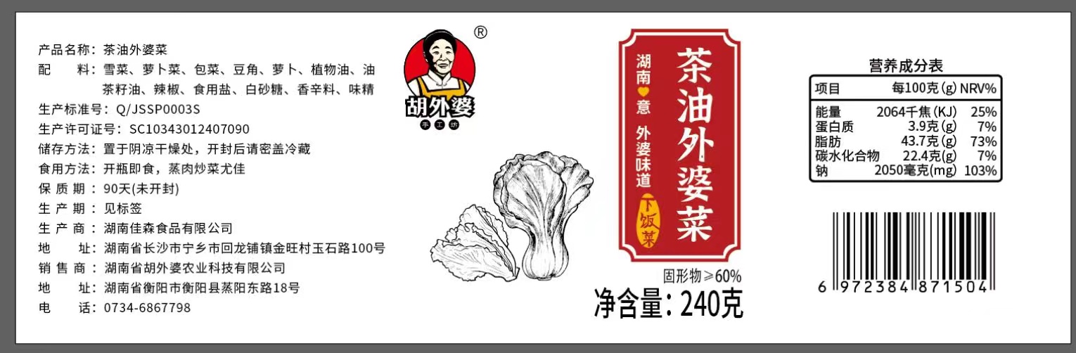 🈚️添加剂 🈚️防腐剂 🈚️色素 胡外婆茶油外婆菜