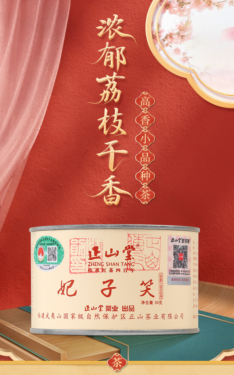 正山堂妃子笑红茶正山小种红茶特级浓香型罐装红茶茶叶30g/50g/90g/100g/礼盒60g/礼盒100g/礼盒200g
