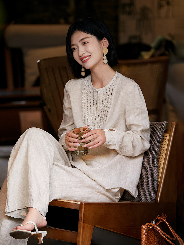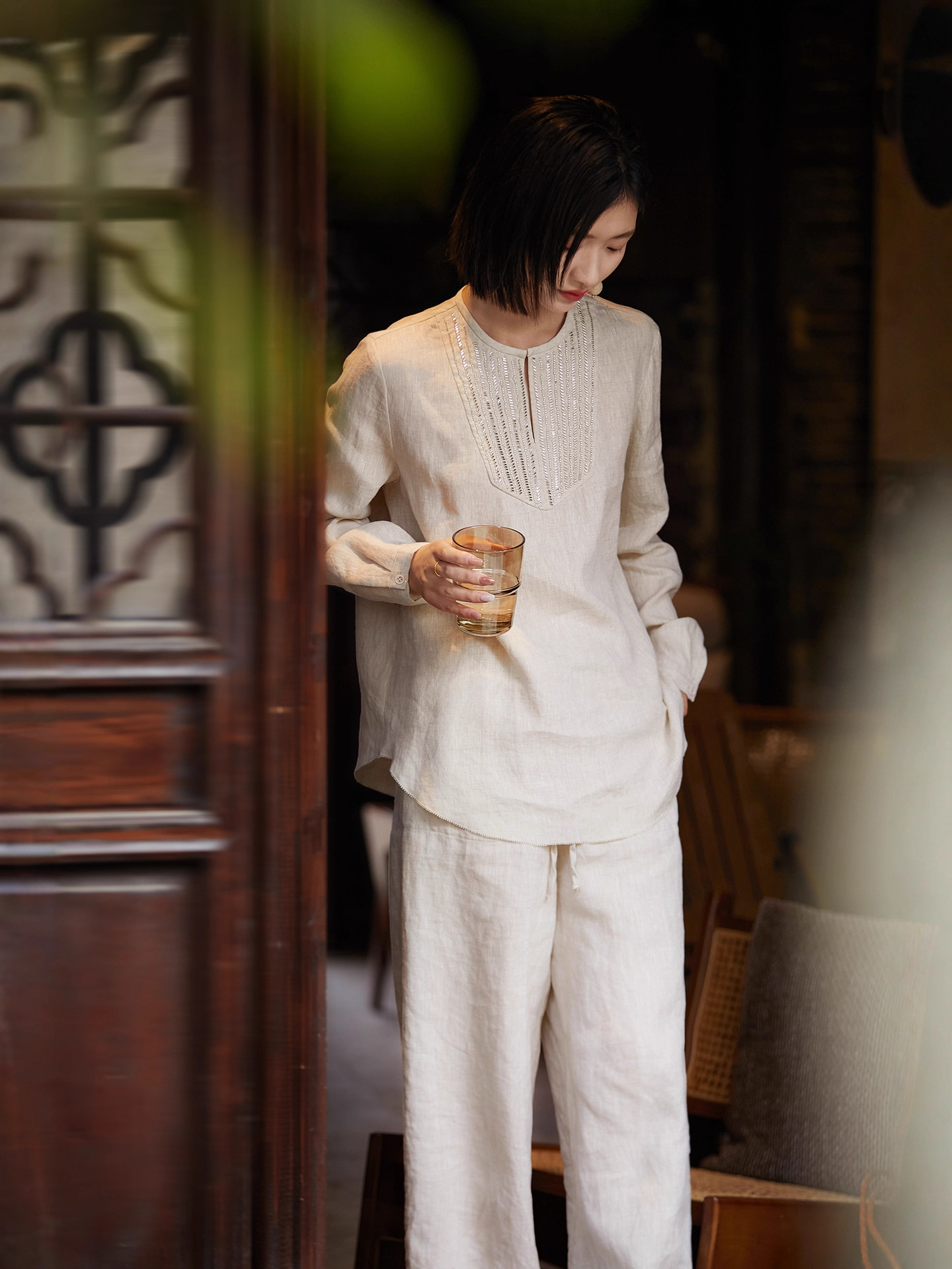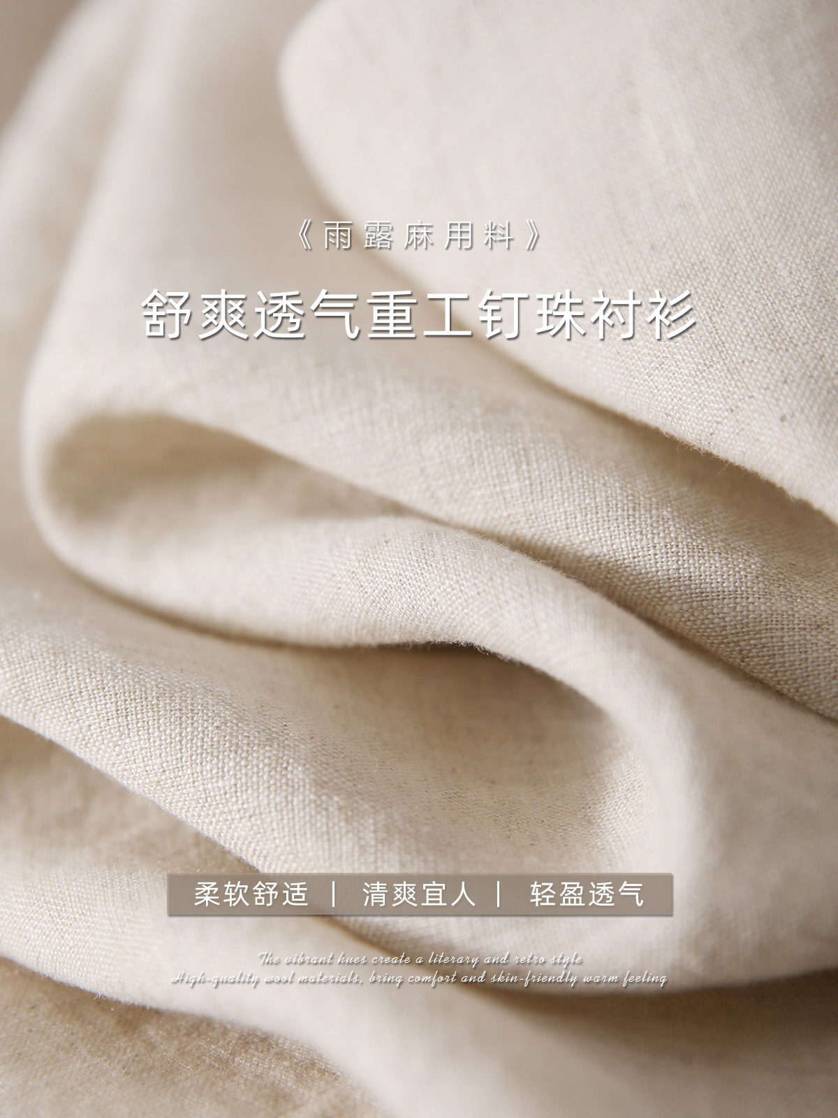 法国進口雨露麻重工钉珠亚麻衬衫,挚爱自然气质慵懒中式老钱范~