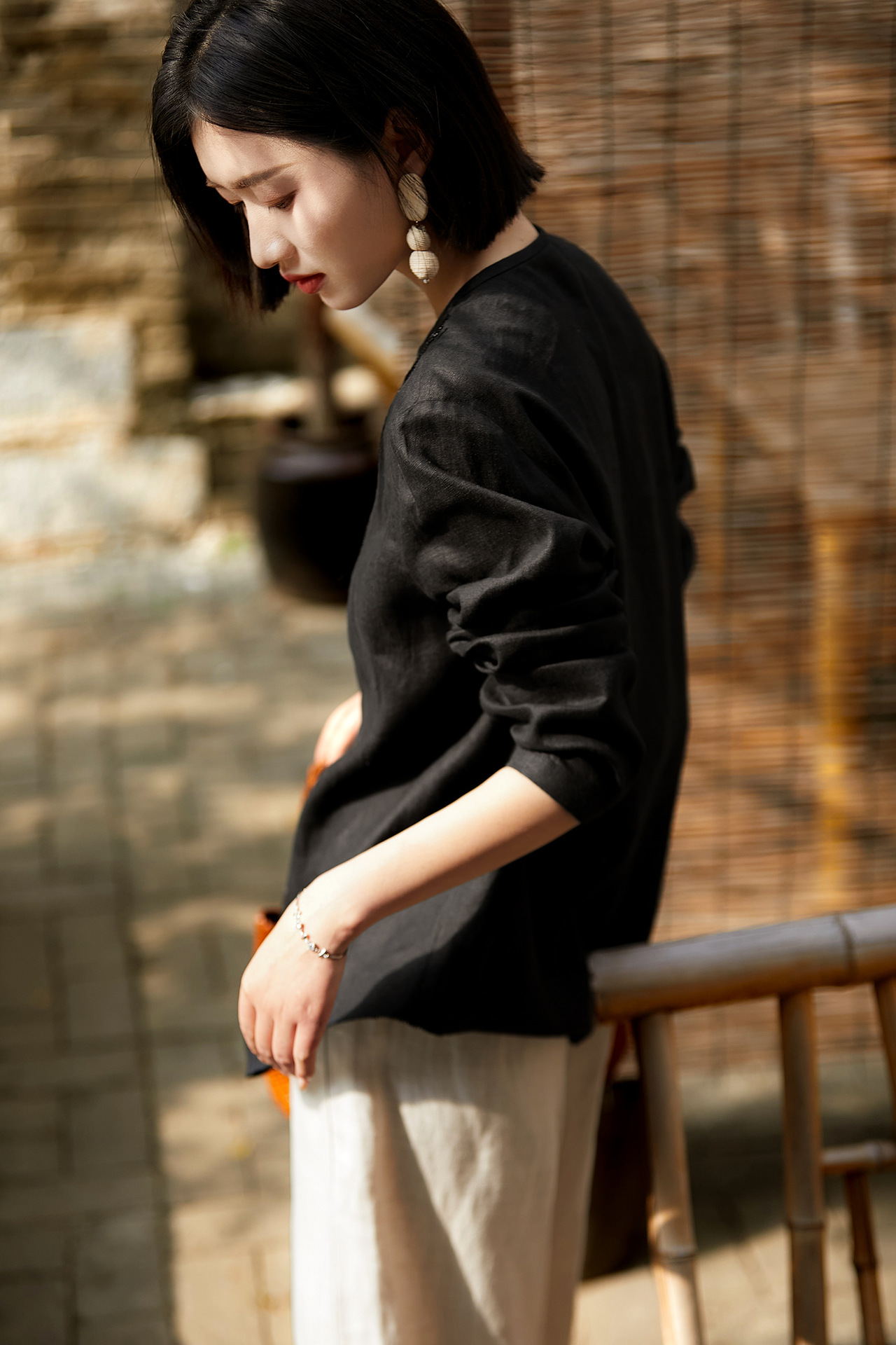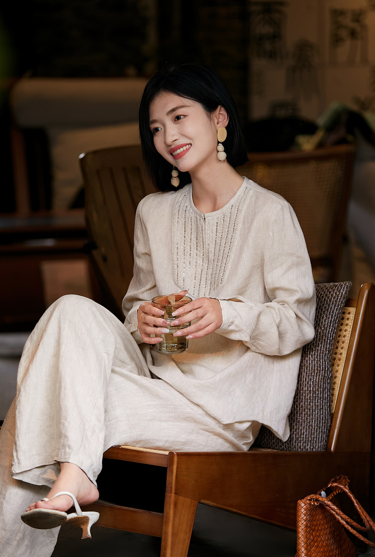 亚麻作为人类早期使用的天橪植物纤维之一,不仅生态友好,更具有坚韧耐用、轻盈透气吸汗的特性能吸收皮肤散发的水汽,释放到空气中,带来凉意亚麻衣物会随穿着的时间和频率变得愈发柔软宽松直身廓形,版型设计是很有包容度的~