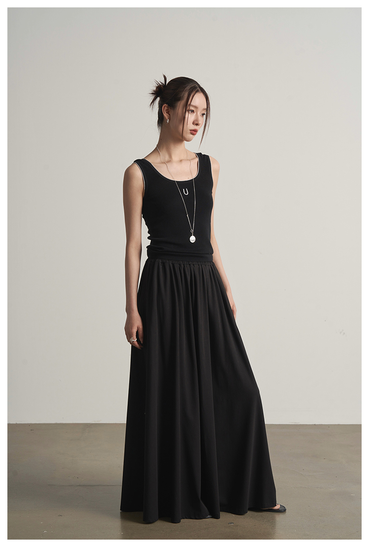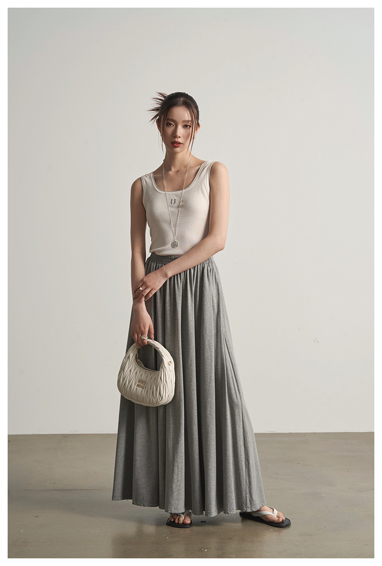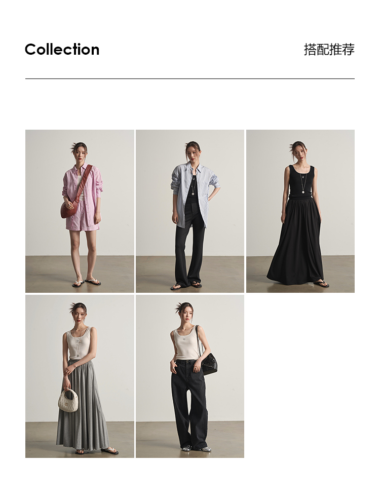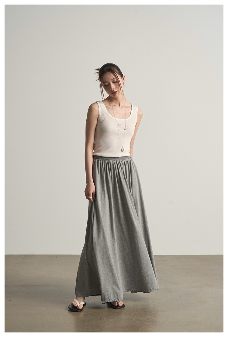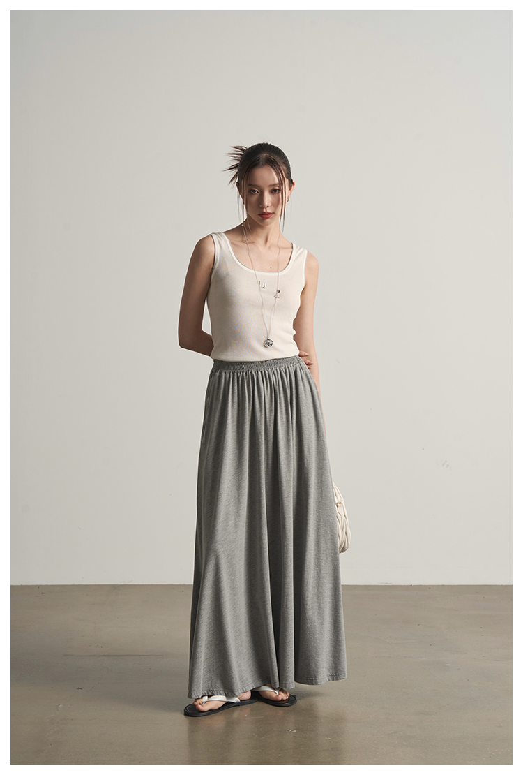 UMILAB|沐光*随性自在精梳棉撞色叠穿真两件T恤/松紧腰半裙E252W