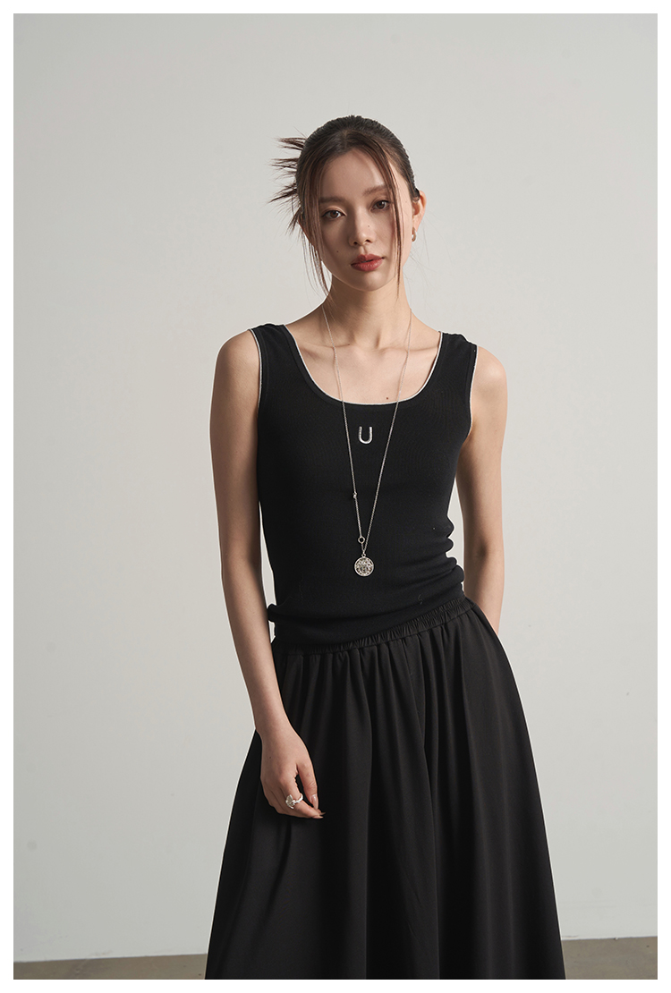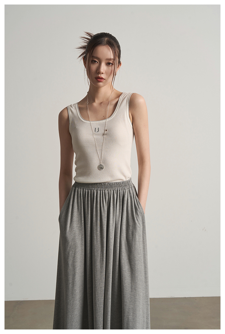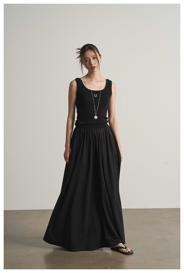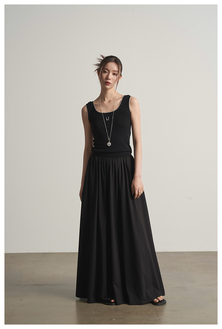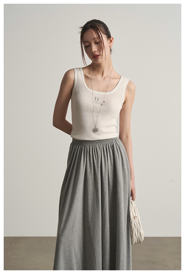 UMILAB|沐光*随性自在精梳棉撞色叠穿真两件T恤/松紧腰半裙E252W