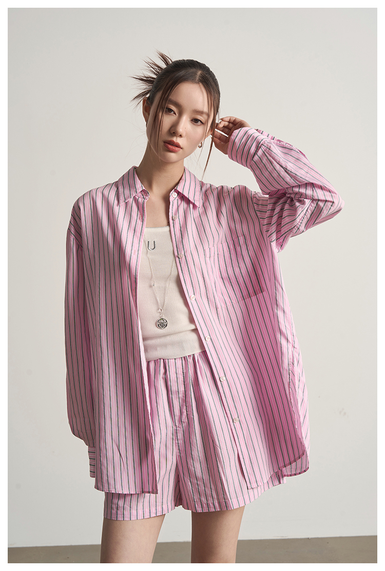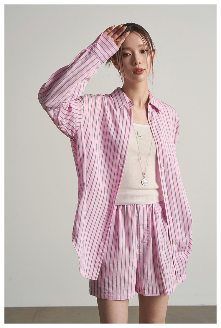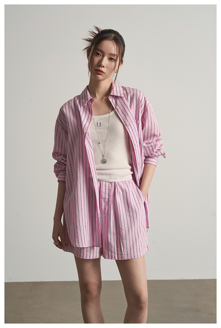 UMILAB【奇幻】高克重100%棉柔软挺括百搭宽松条纹春夏T恤女T717W