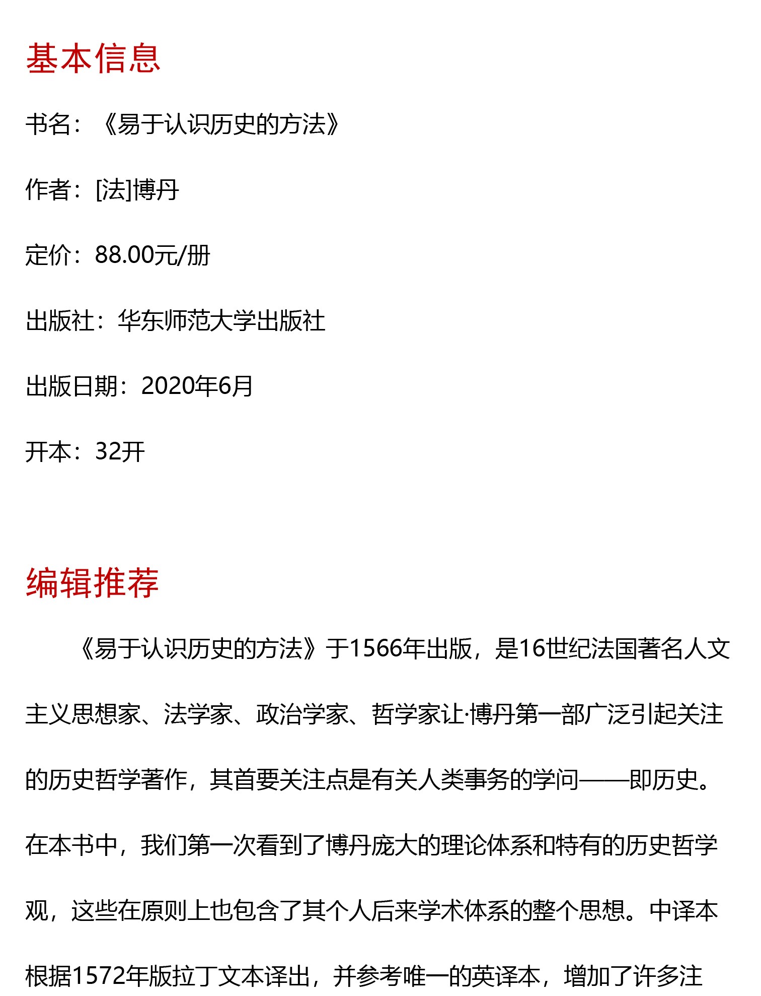易于认识历史的方法 博丹历史哲学著作 古典政治哲学研究