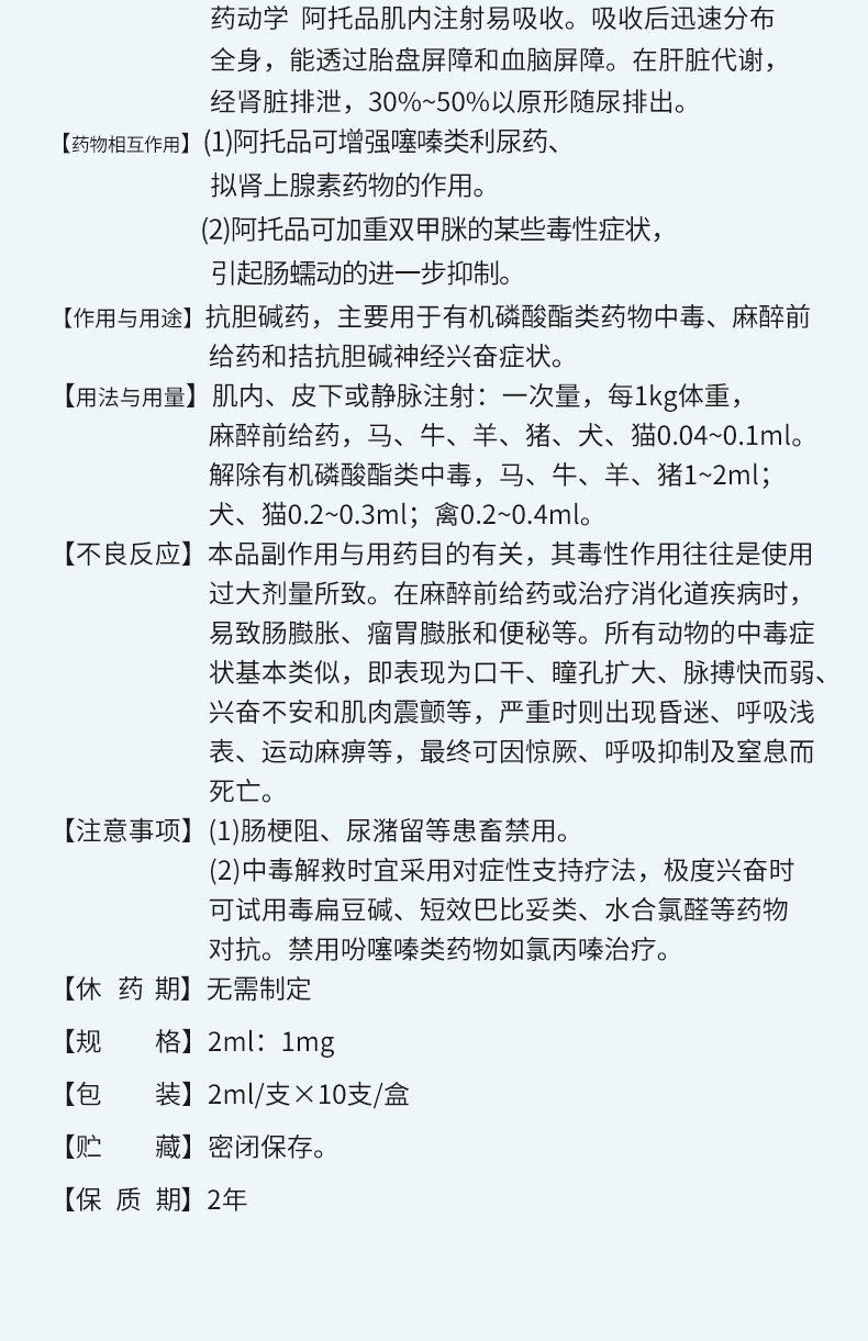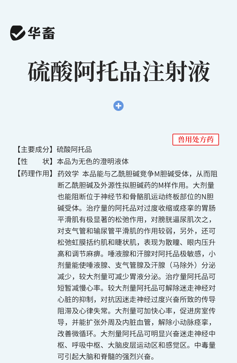 华畜硫酸阿托品注射液牛羊猪解磷中毒犬猫有机磷急救解毒呕吐痉挛
