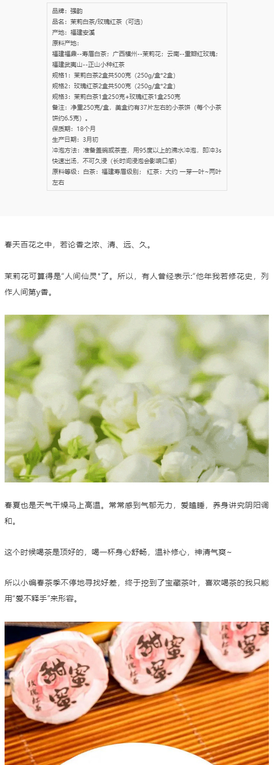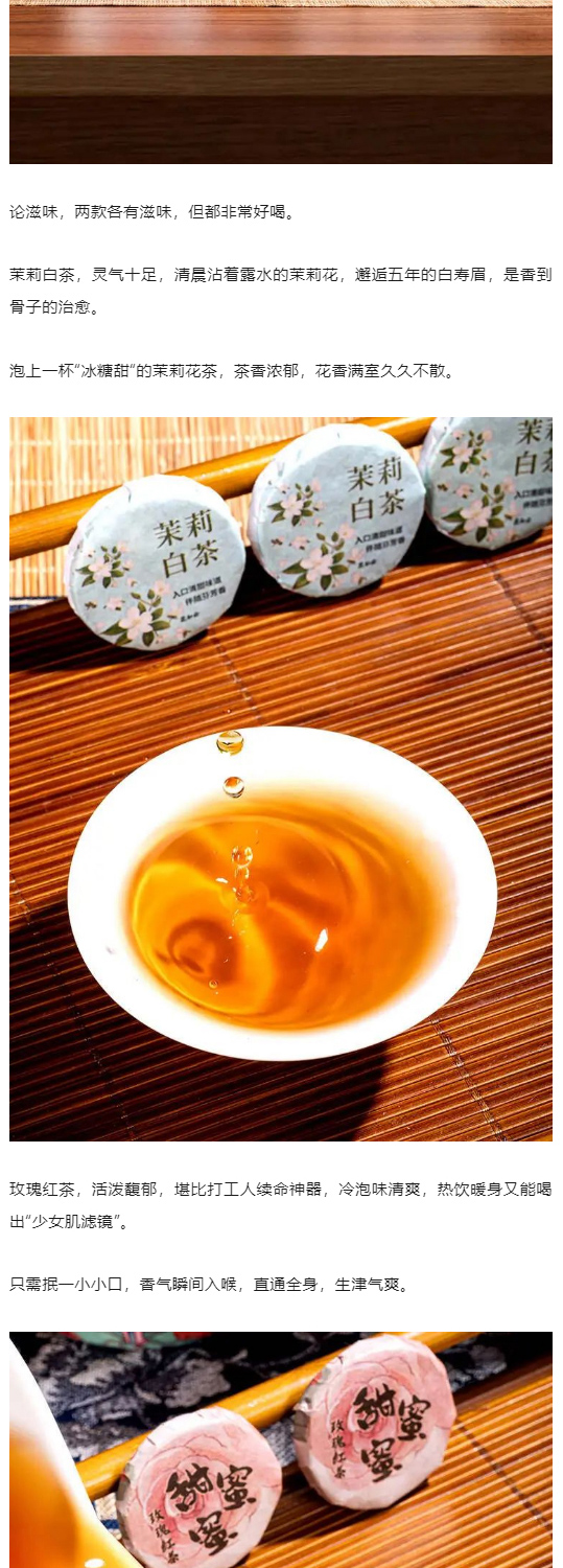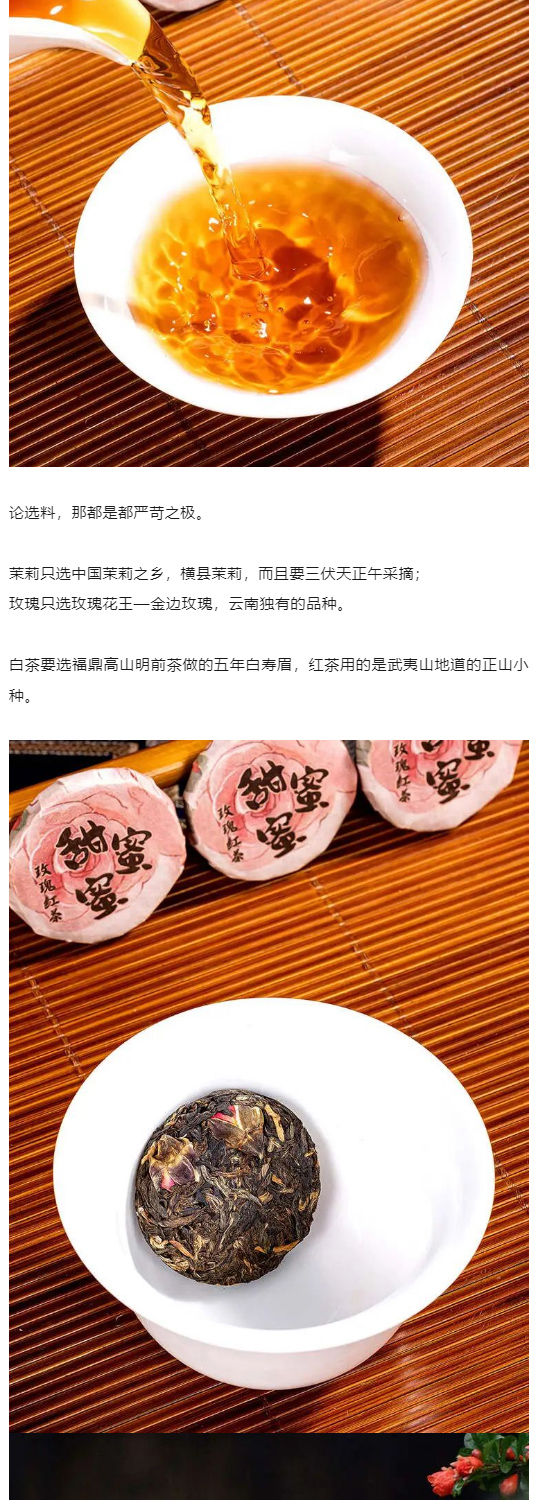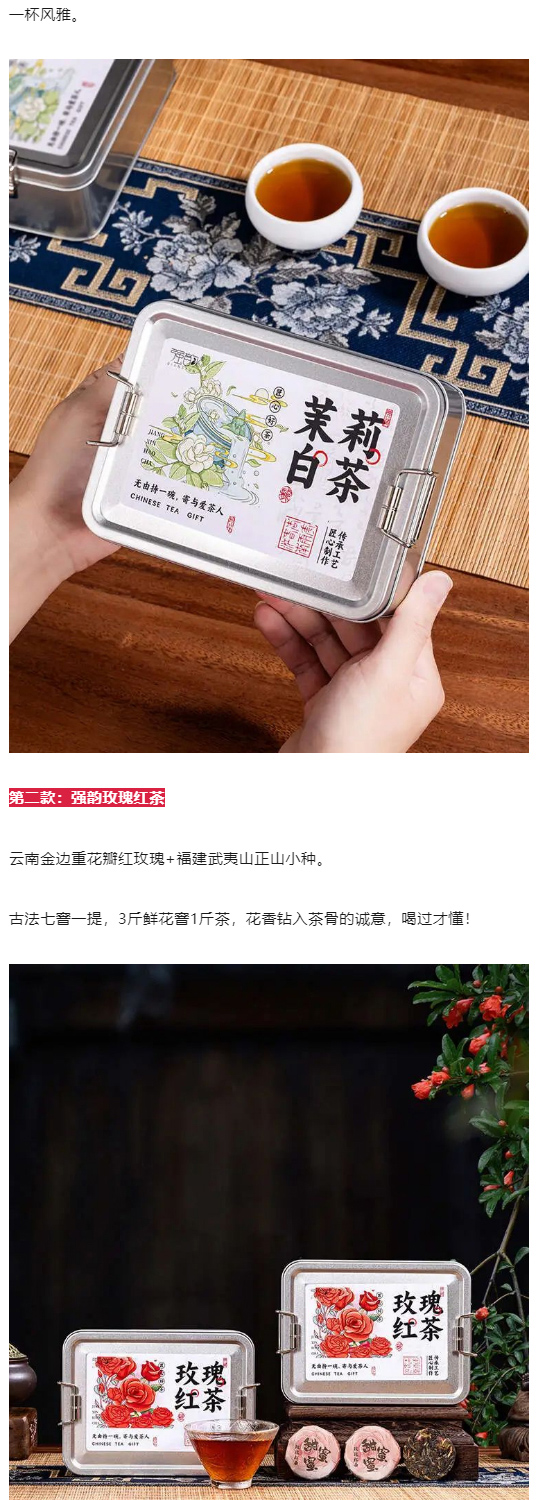 茉莉白茶/玫瑰红茶 ,花香在口腔绽放,3斤花窨1斤茶,七次窨制