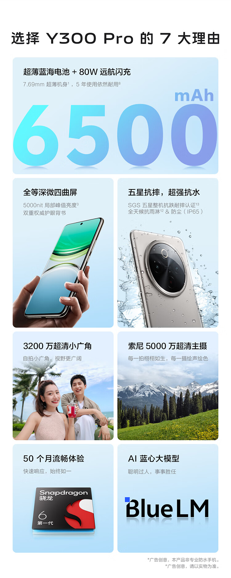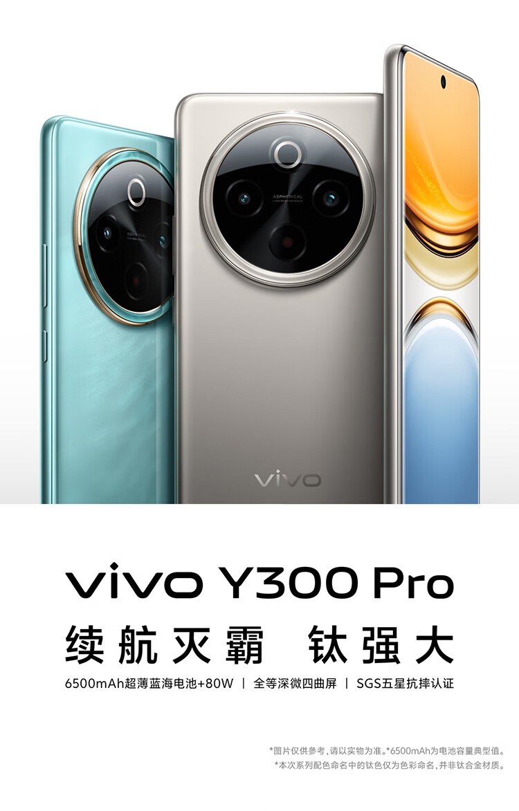 【新品】vivo Y300 Pro 6500mAh超薄蓝海电池 全等深微四曲屏 SGS五星抗摔认证 AI 拍照 手机