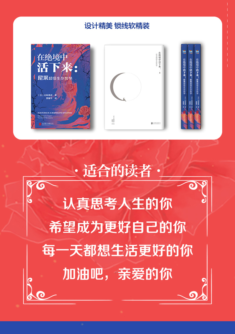 3、抓住时代痛点,由表及里,清理人生淤堵。本书作者;超译了尼采语言简练的232则语录,精准贴合当下的各类生存困惑,抓住时代的大众痛点,触动直达人心,转而引发积极向上的共鸣,从中找到新的生命力量。