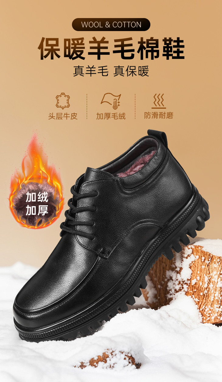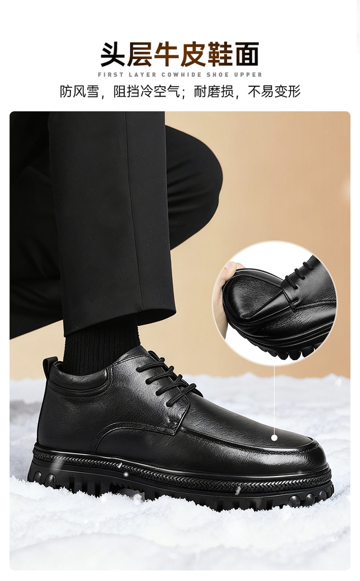 【牛皮系带保暖羊毛棉鞋】防风通勤棉鞋休闲加绒通勤鞋XM404