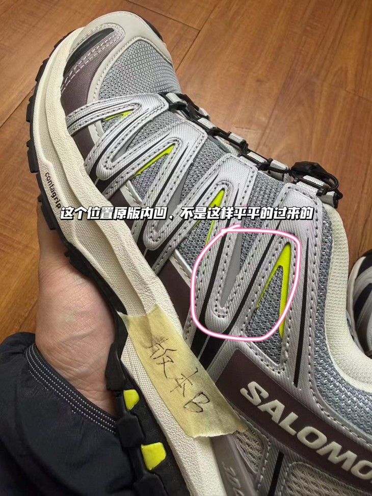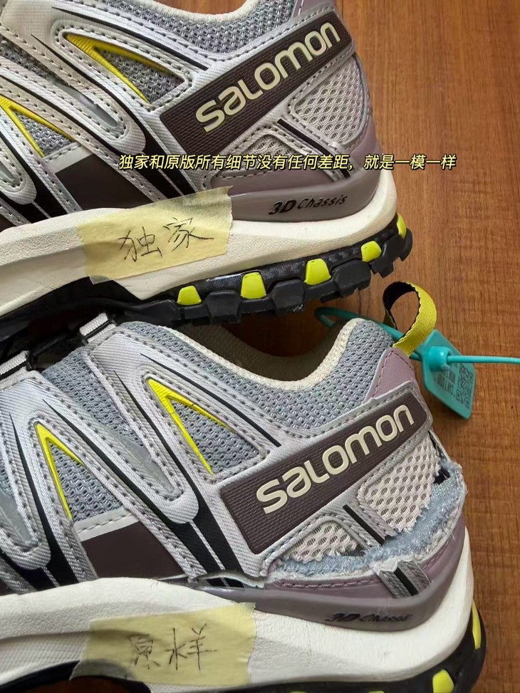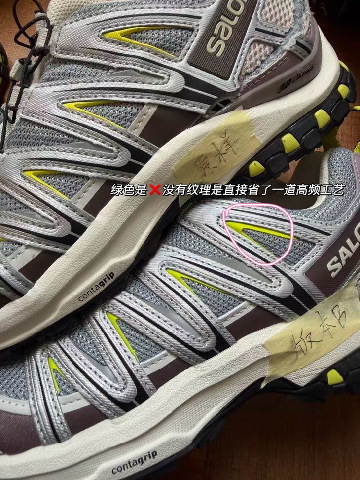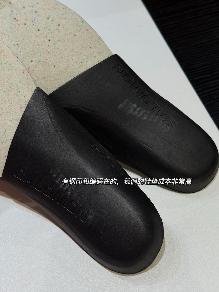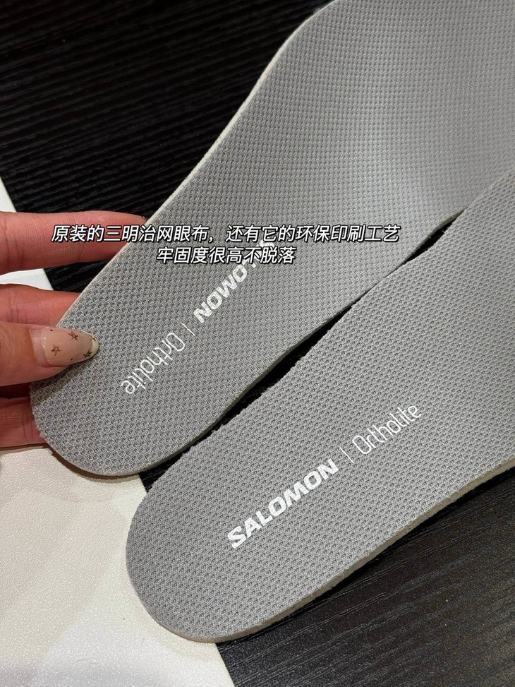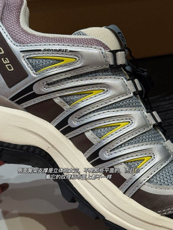 侧身是磨砂立体太空,不同位置材质不同,我能保证的所有东西和正品没区别。上脚后你就懂为什么独家的salomon一直被追问