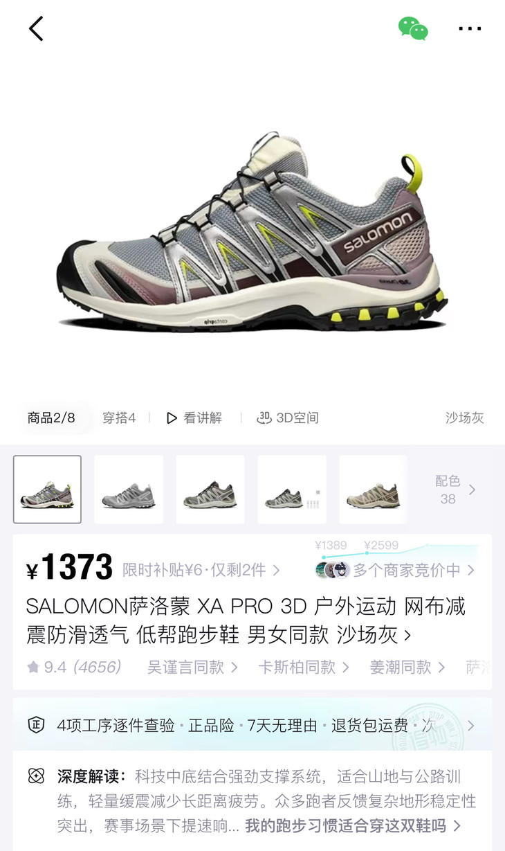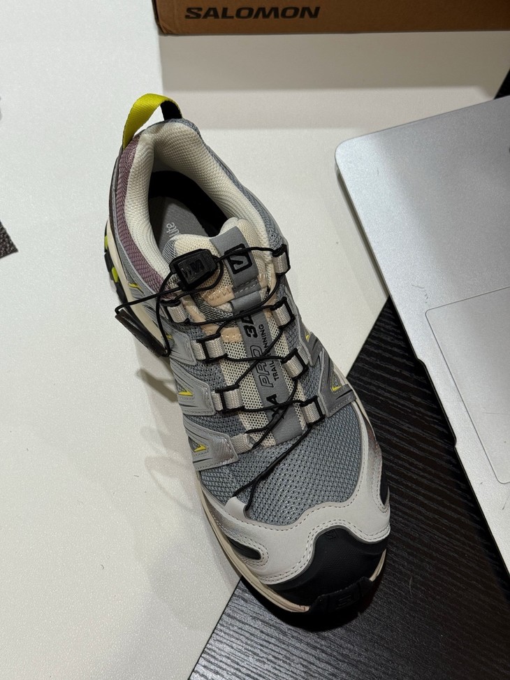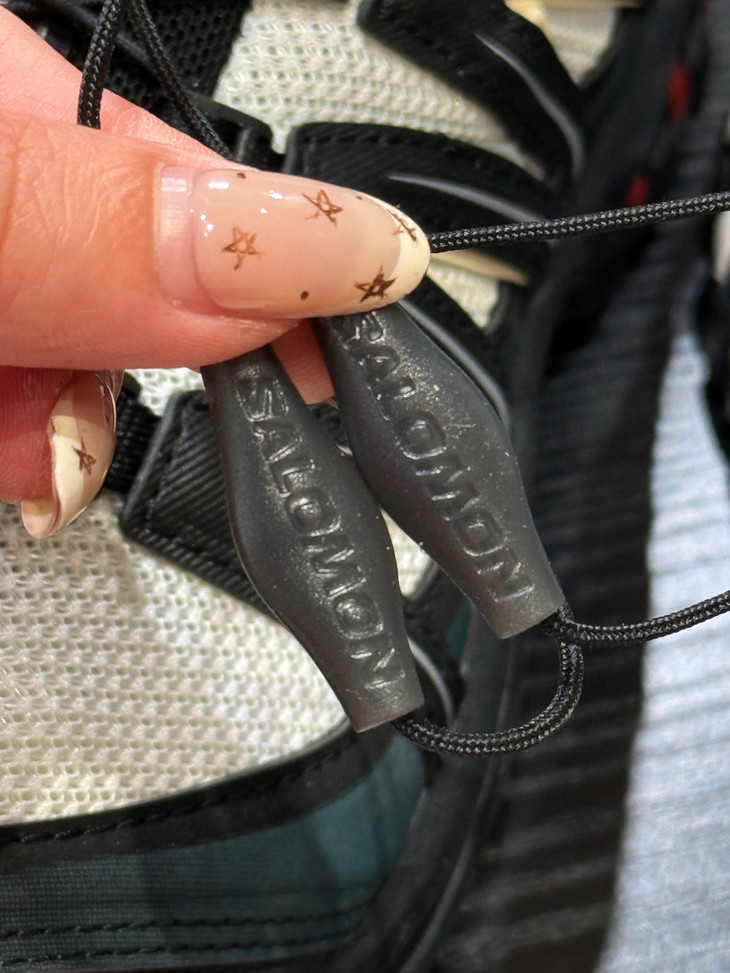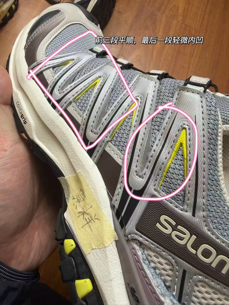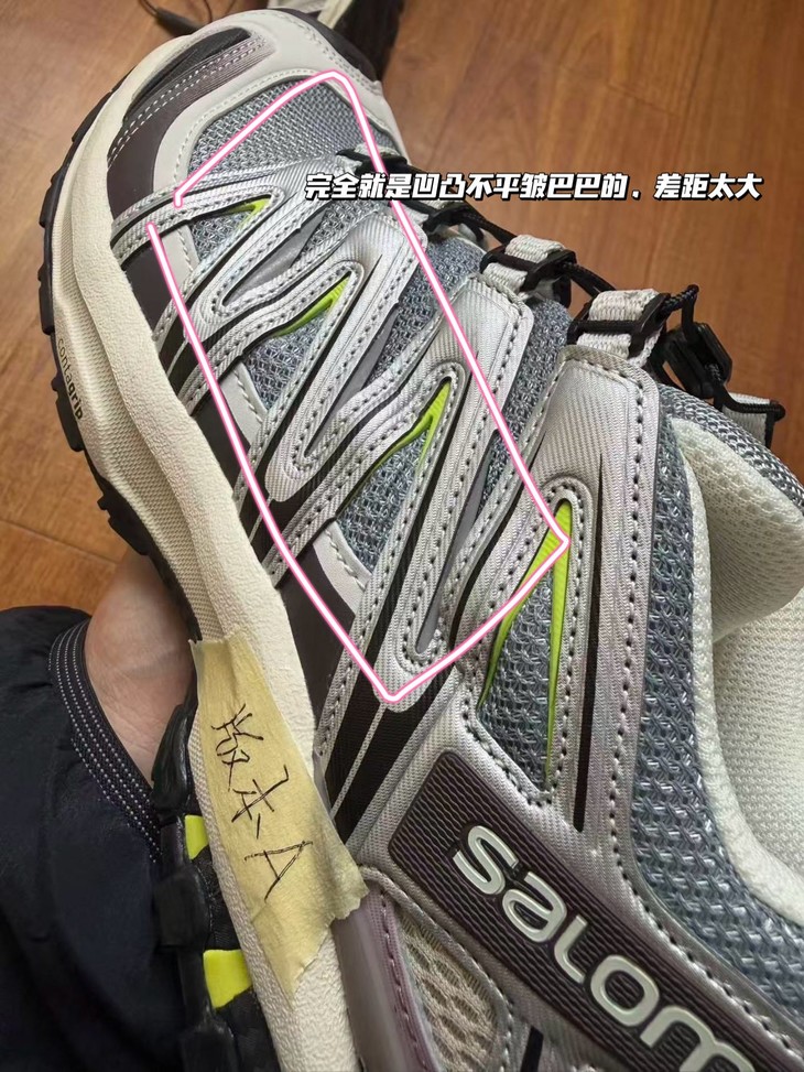 侧身是磨砂立体太空,不同位置材质不同,我能保证的所有东西和正品没区别。上脚后你就懂为什么独家的salomon一直被追问
