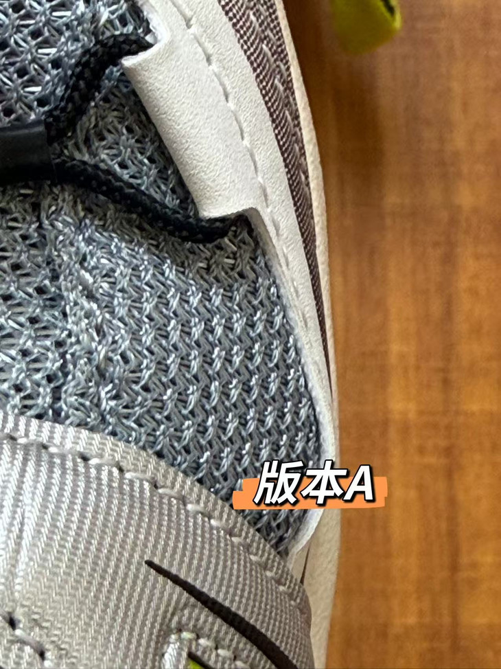 市面b版本前面较为平顺 最后一段没有内凹鞋口的形状没有出来,也是一眼假。
