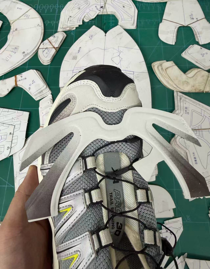 我们和原版没有任何差距‼️ 按照原厂纸板放版,鞋型鞋面形状与原样一样,前三段平顺 最后一段轻微内凹。