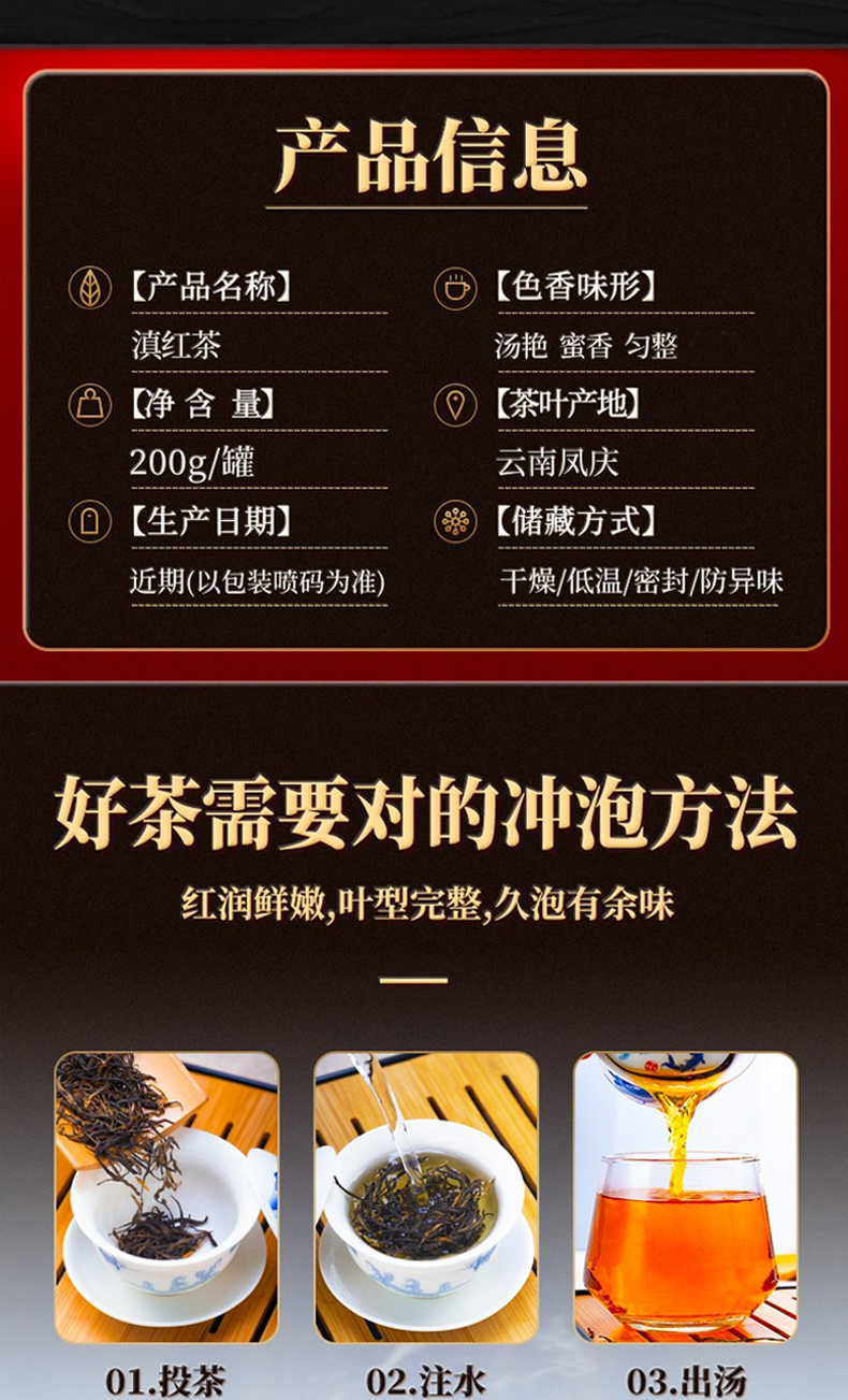 正同昌 滇红茶 特级浓香型云南正宗凤庆老树茶叶晒红 200g罐装古树红茶蜜香