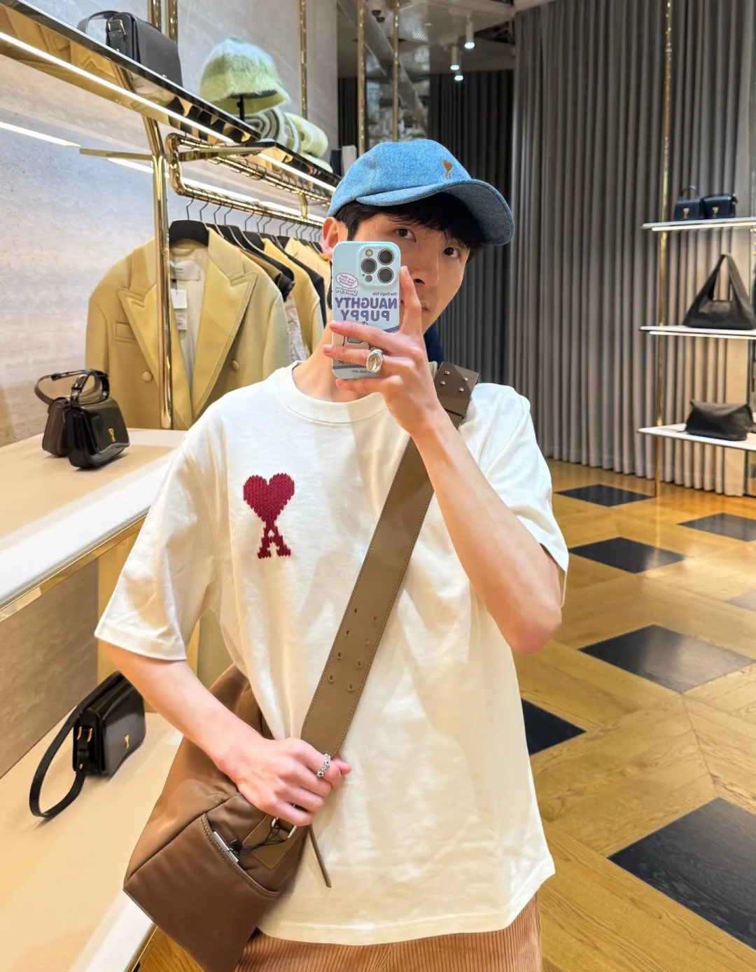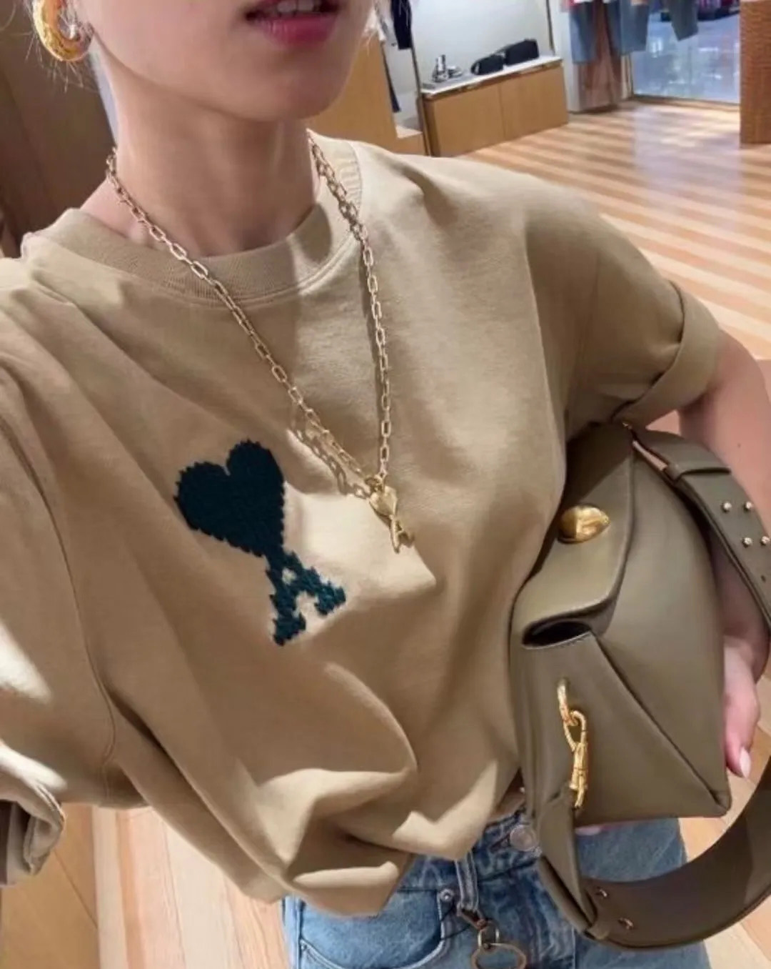 【sm1】情侣新款细腻刺绣爱心休闲短袖T恤!!