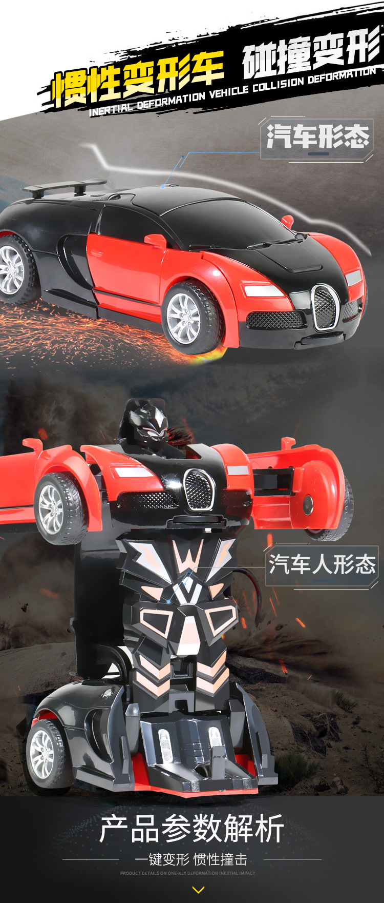 撞击变形车回力布加迪变身机器人