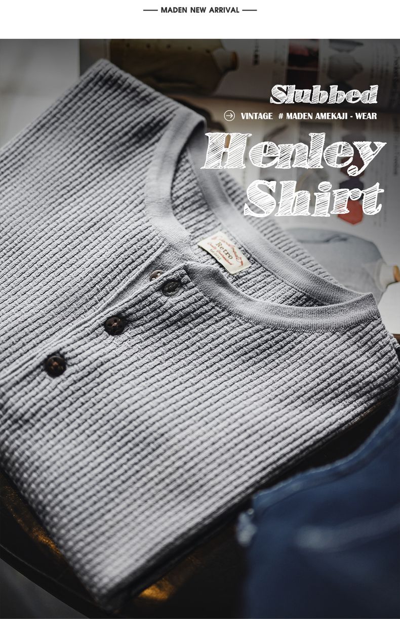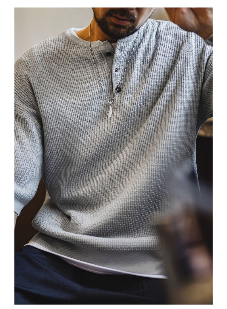 工装优选 美式复古黑色针织亨利衫阿美咔叽竖条纹套头毛衣男秋冬