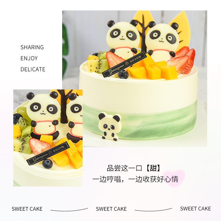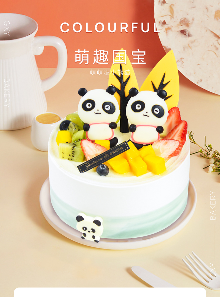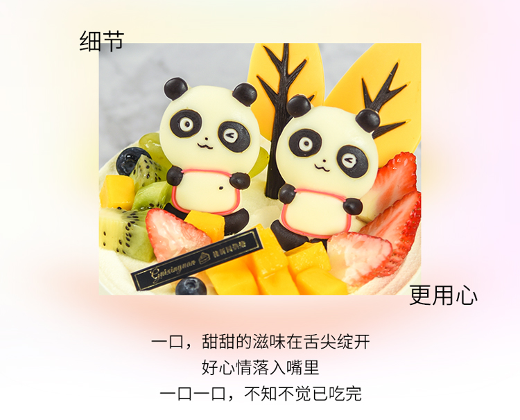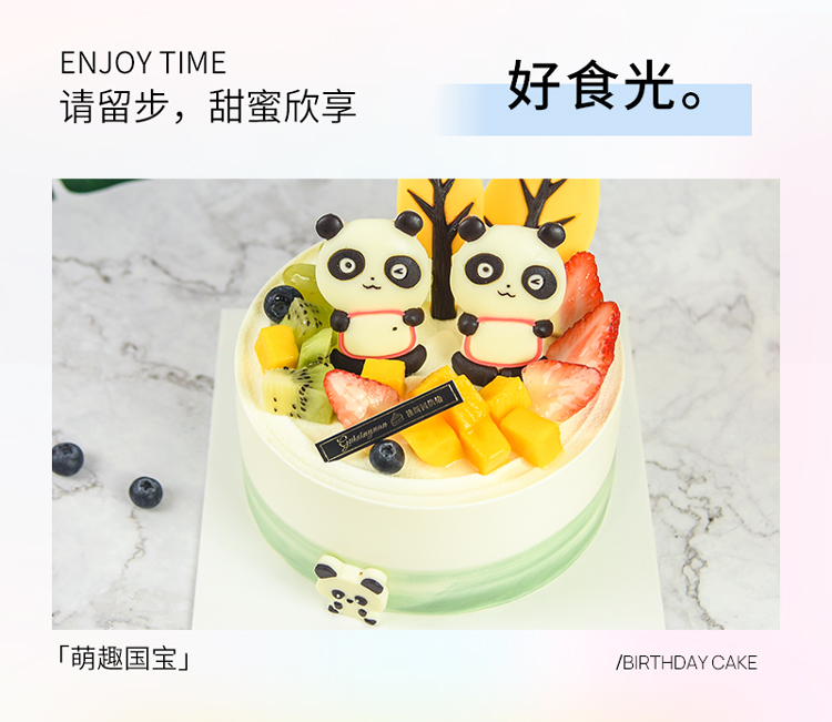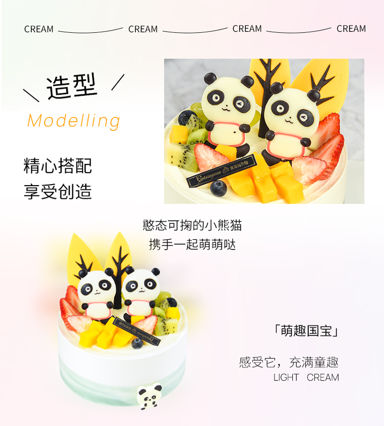 【萌趣国宝】 新款趣味生日蛋糕—纯乳脂与牛奶奶油混合,夹层口味升级,细腻香甜