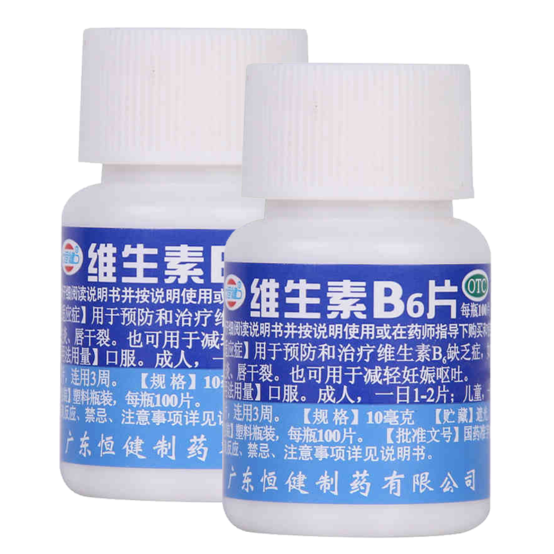 多盒优惠正品恒建制药缺乏维生素b6族100片脂溢性皮炎otc药品口服