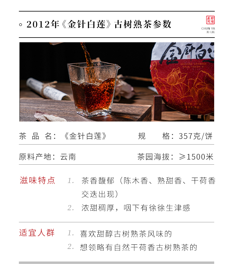【买3送1】 2012年《金针白莲》古树熟茶 357克/饼