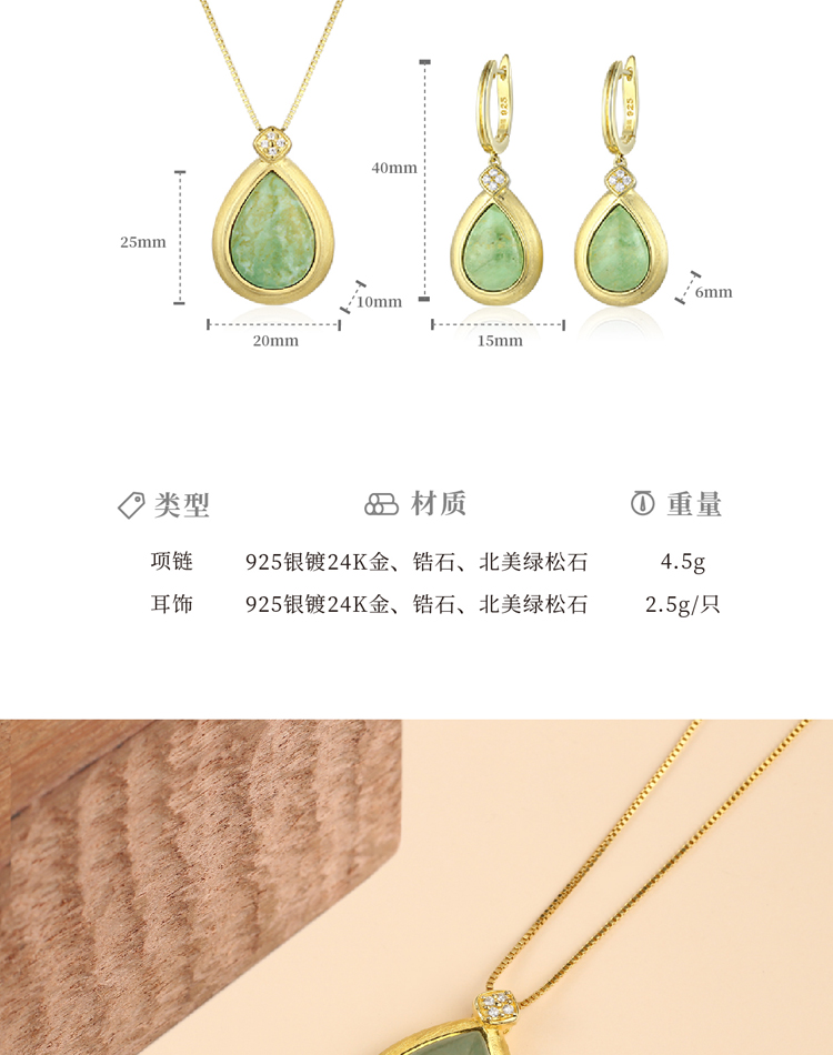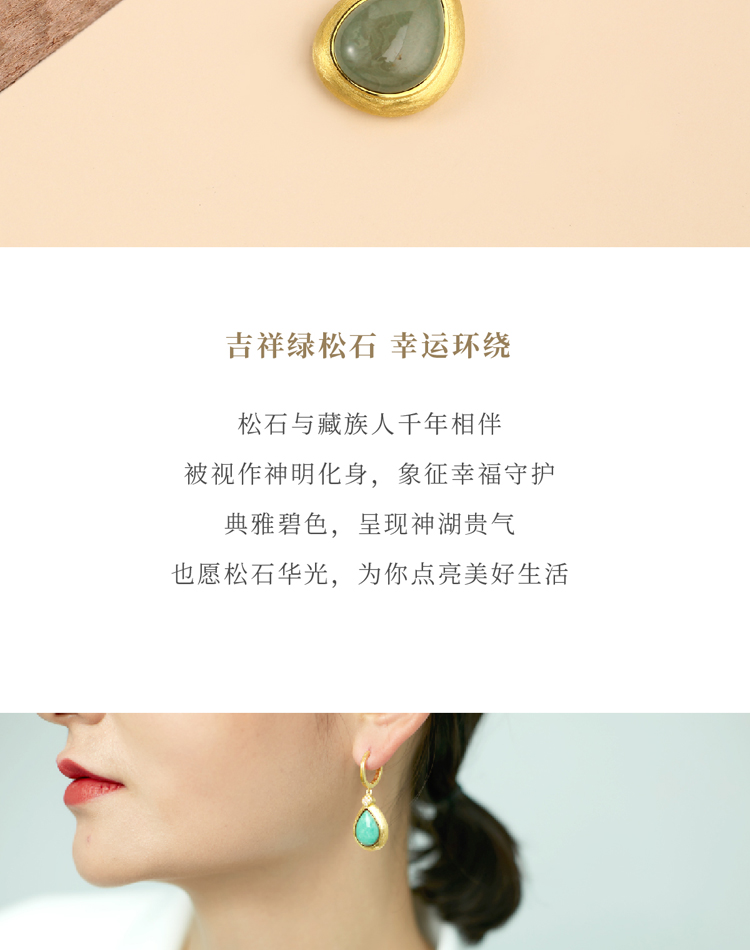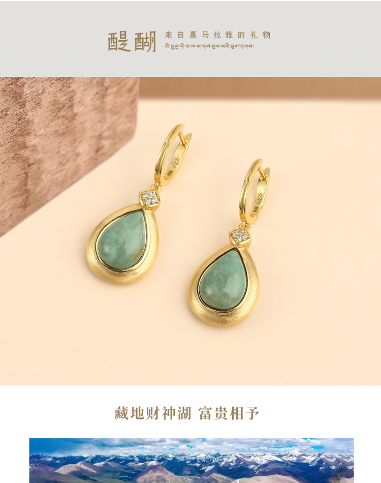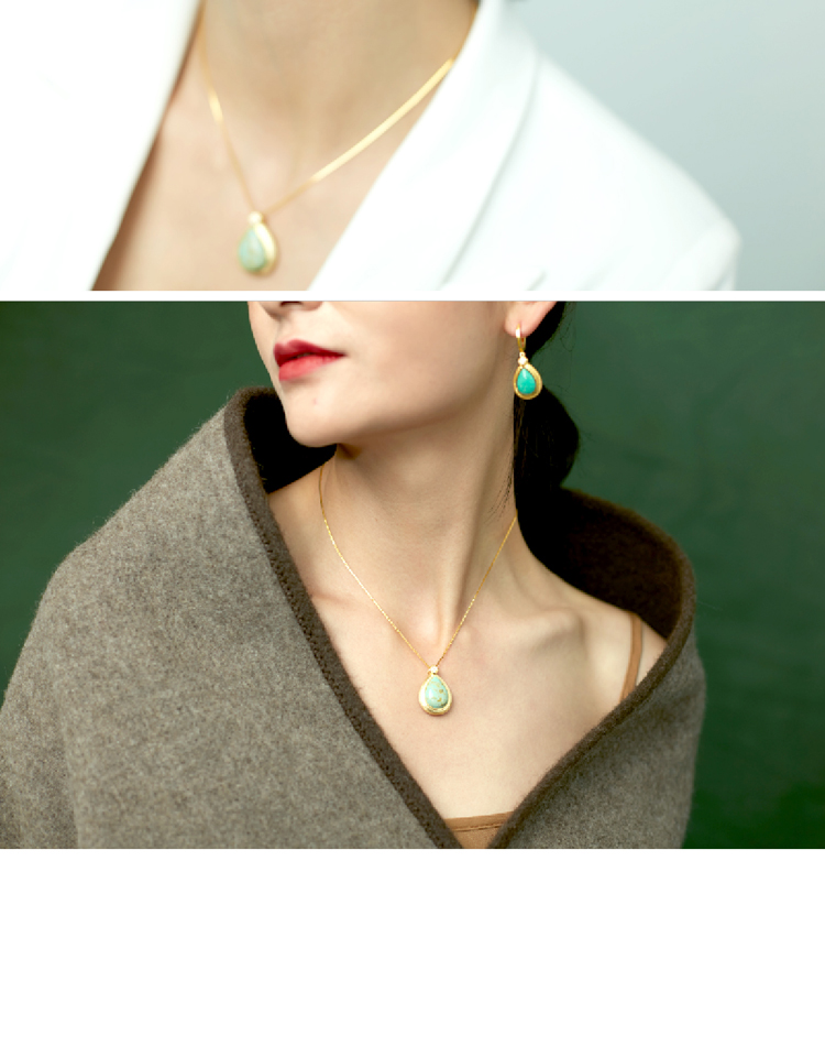 醍醐 思金拉措系列 水滴天然松石项链耳饰套装 藏式饰品 925银