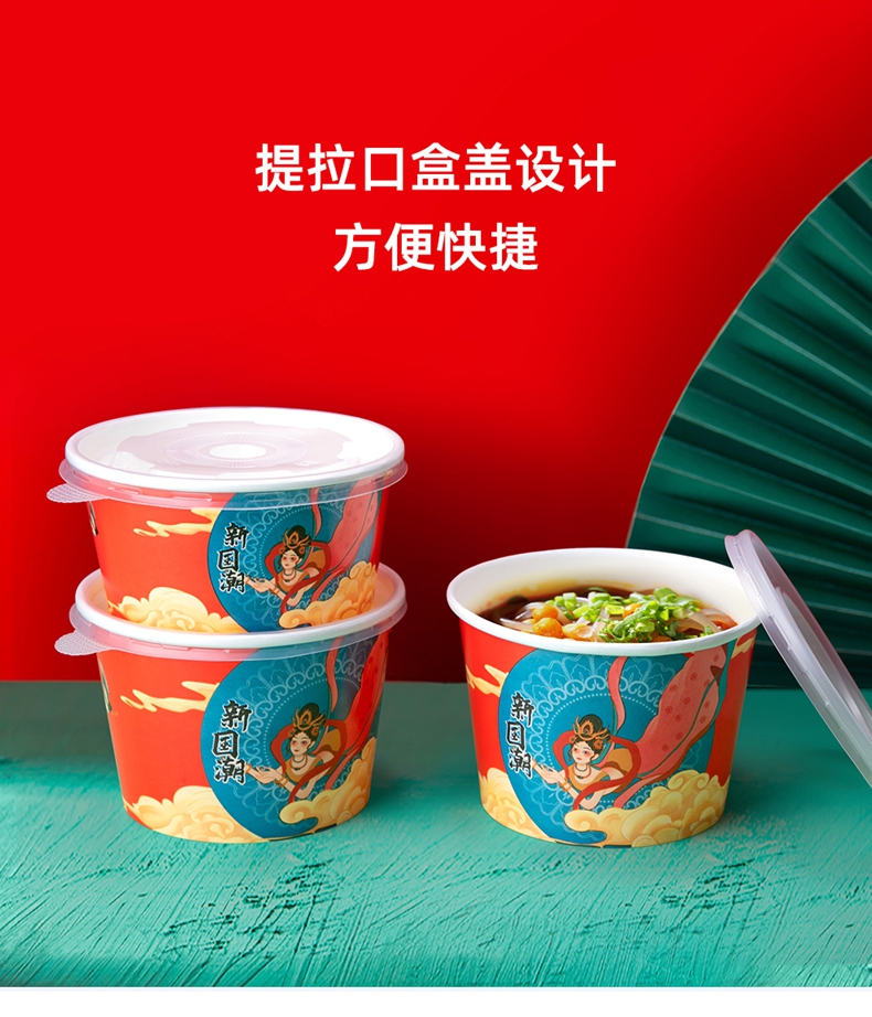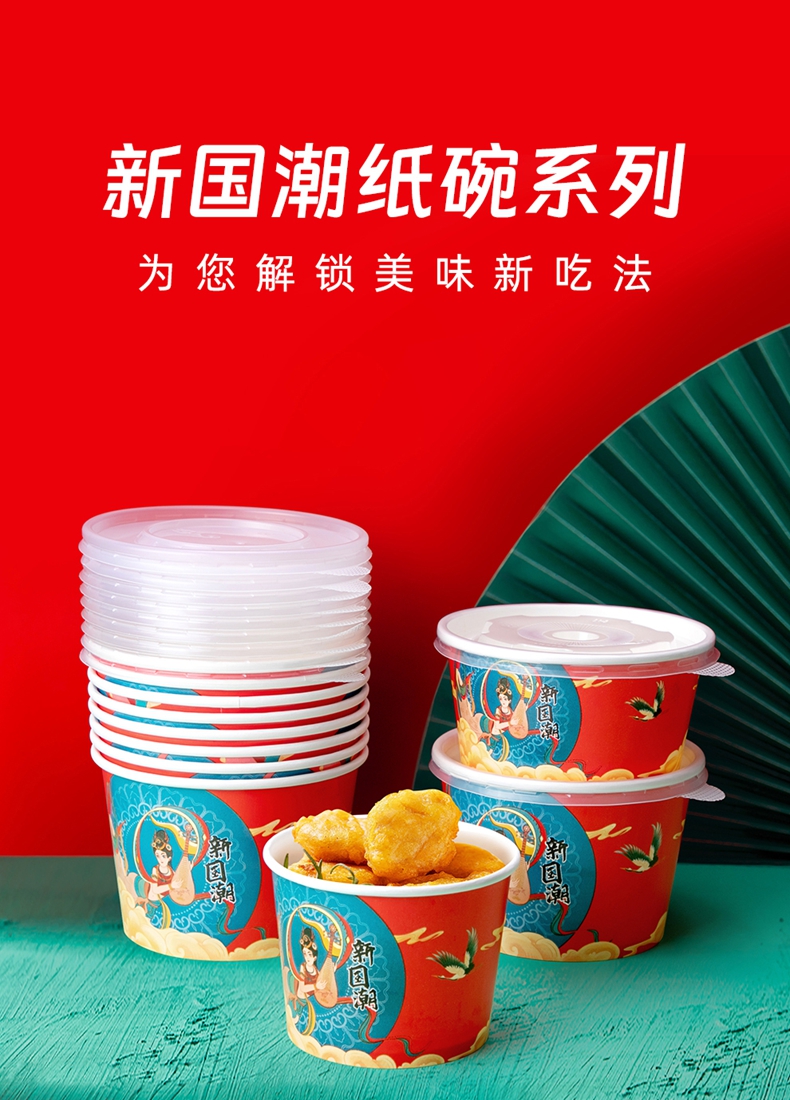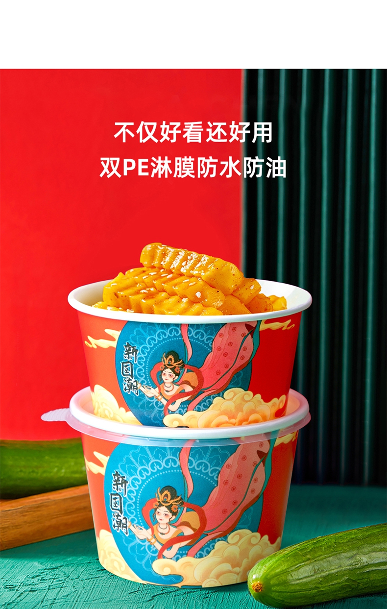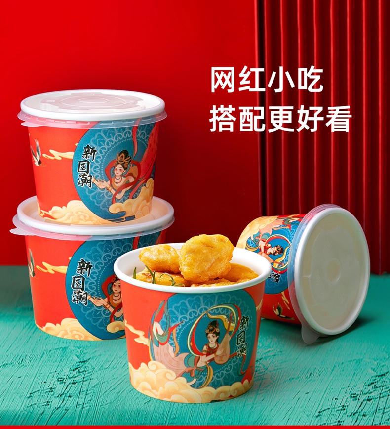 喇叭花一次性国潮风纸碗摆摊臭豆腐炸洋芋圆形小吃牛杂碗外卖打包
