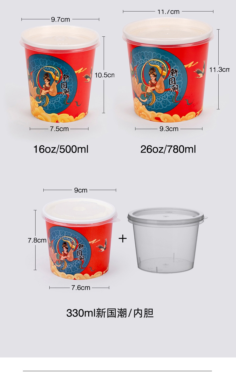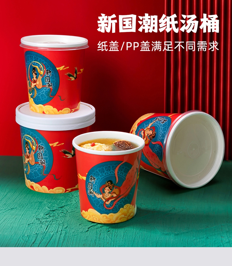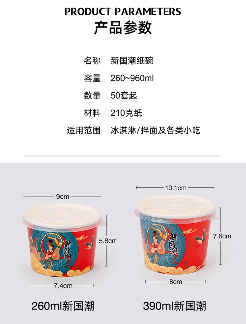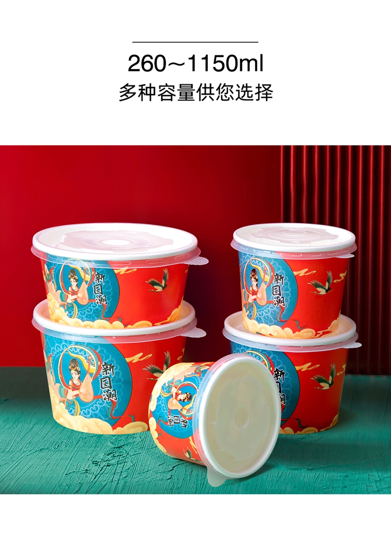 喇叭花一次性国潮风纸碗摆摊臭豆腐炸洋芋圆形小吃牛杂碗外卖打包