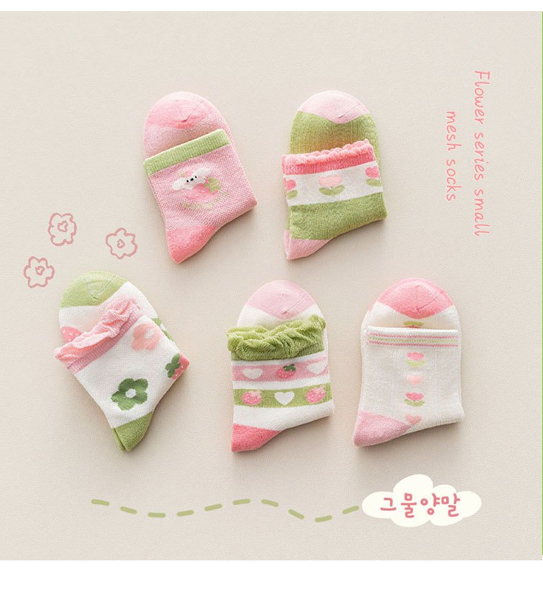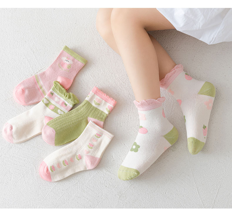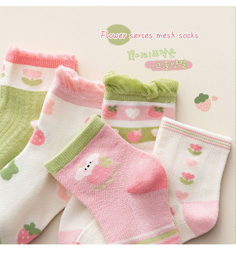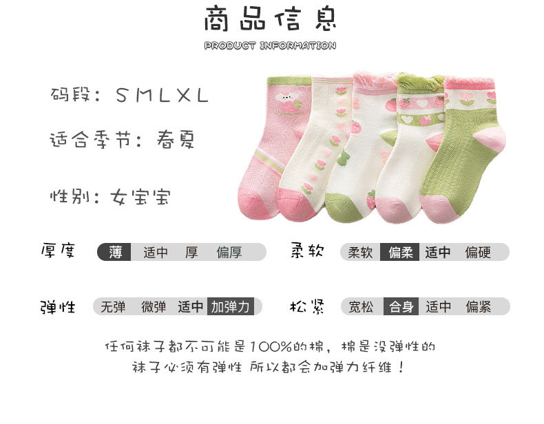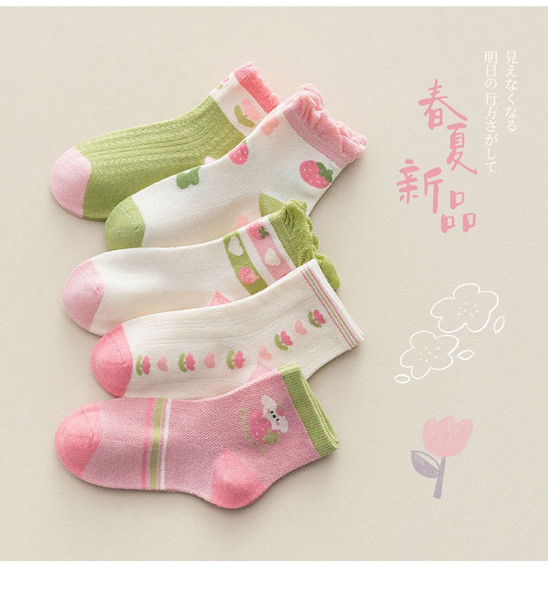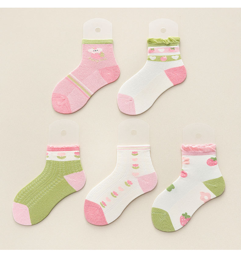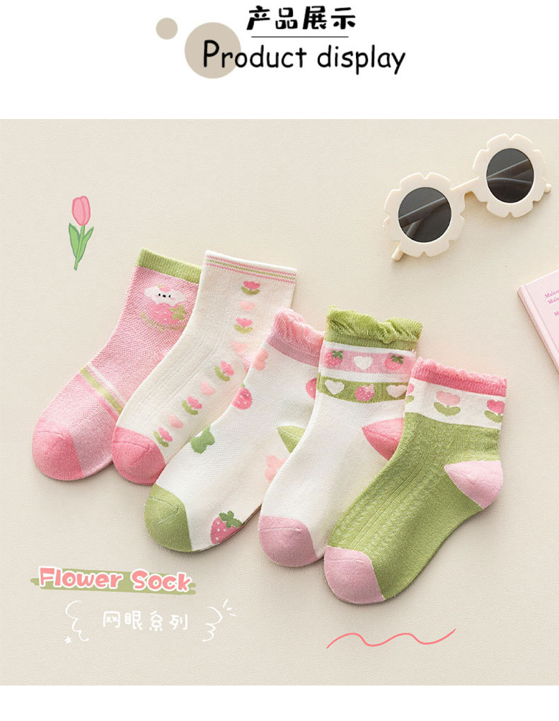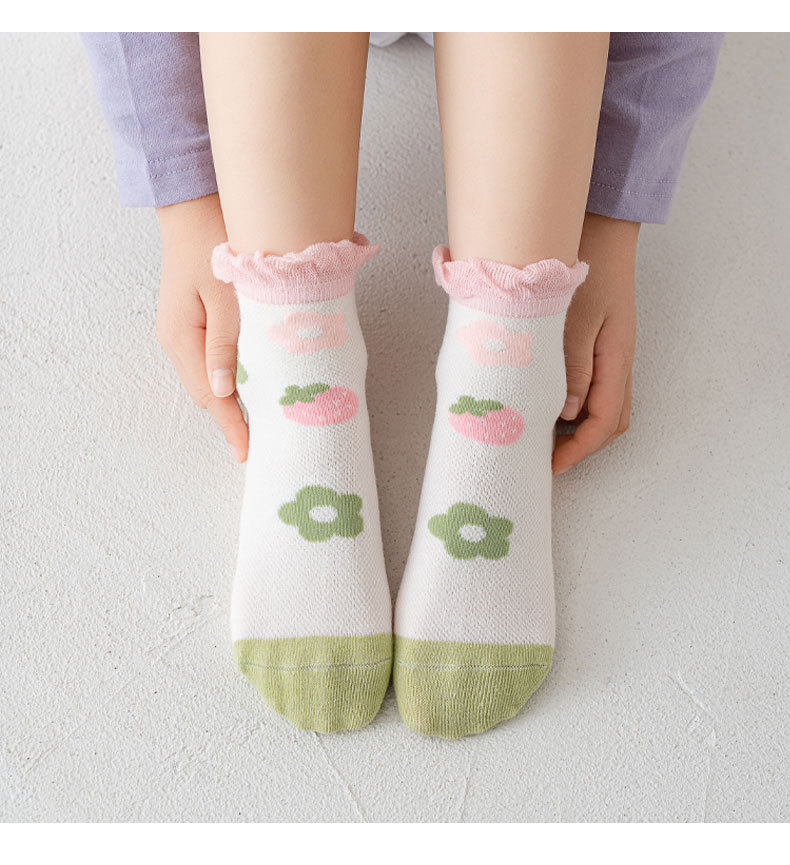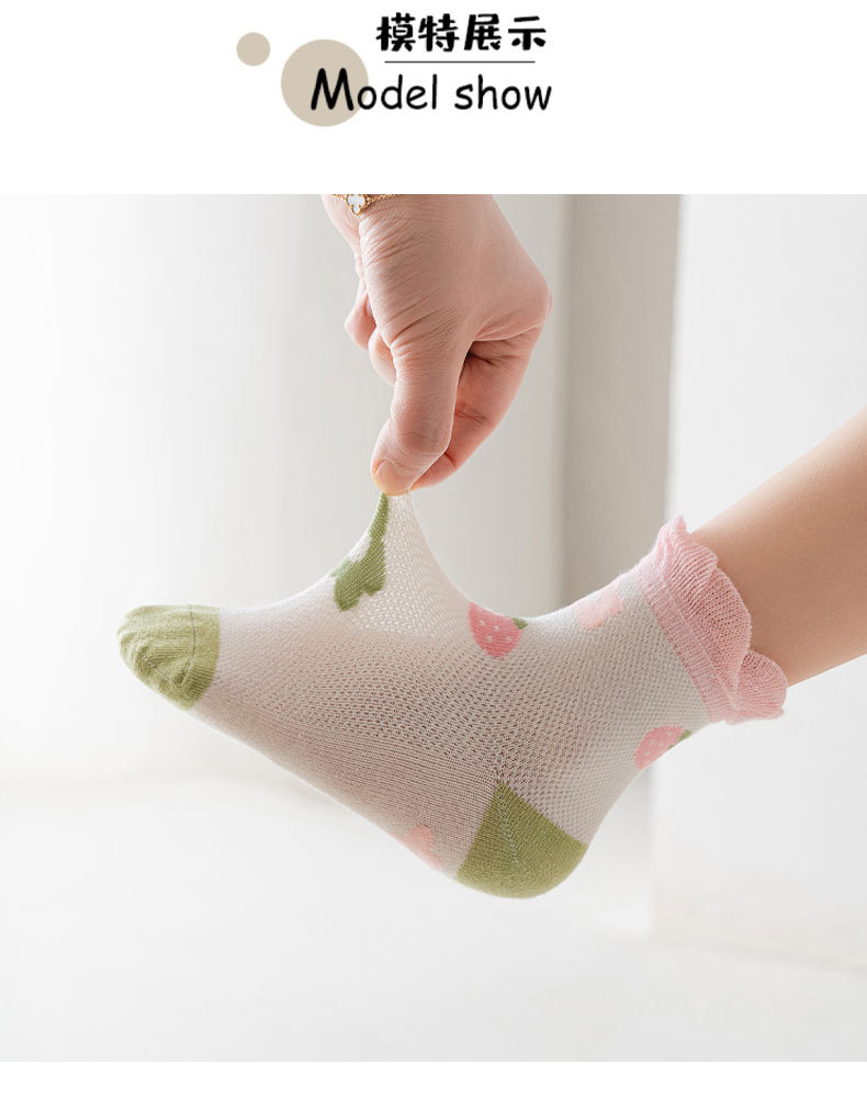 【5双装 网眼花边短袜 点亮日常穿搭】23春夏儿童袜子批发网眼袜薄款可爱草莓花朵棉袜花边公主女童短袜