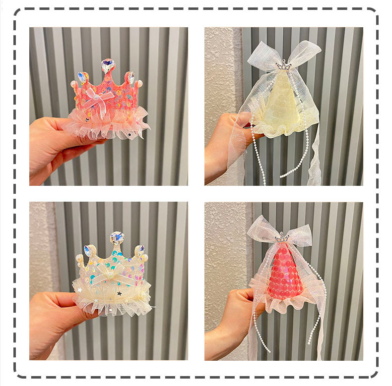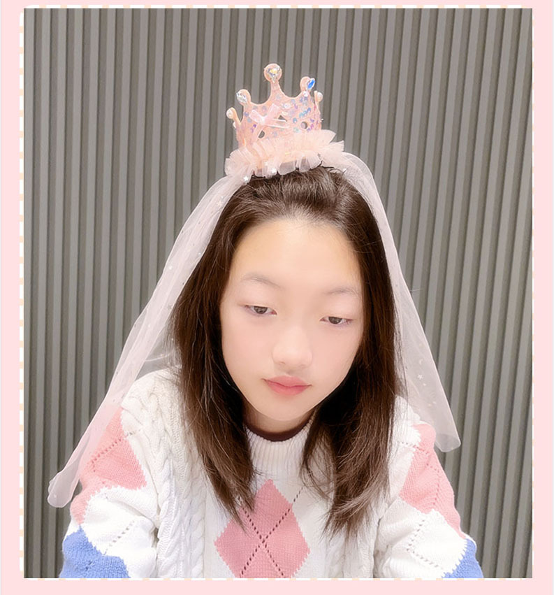 【限时特价!好用不伤发】可爱儿童亮片头纱生日帽发箍甜美皇冠蝴蝶结发夹跨境公主宝宝发饰