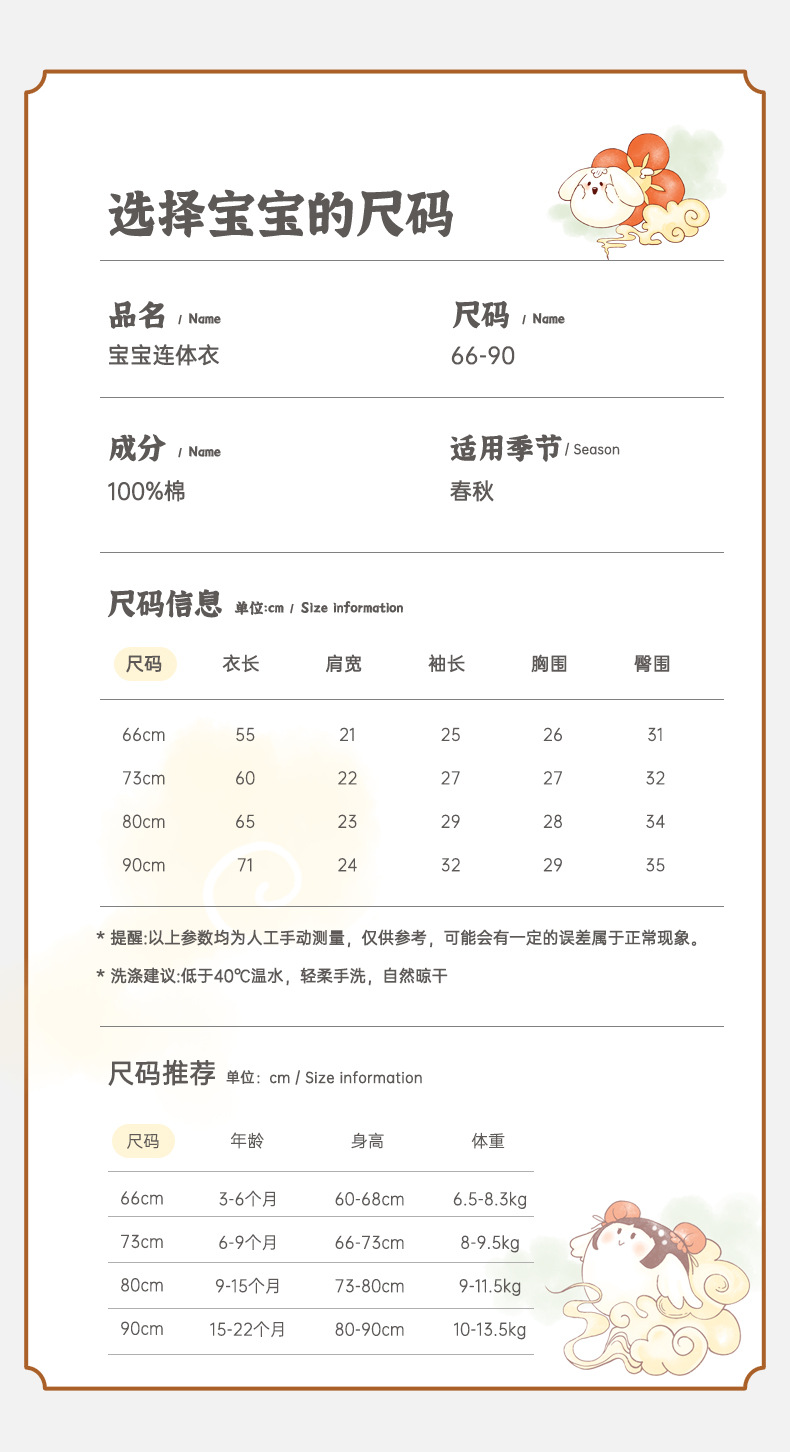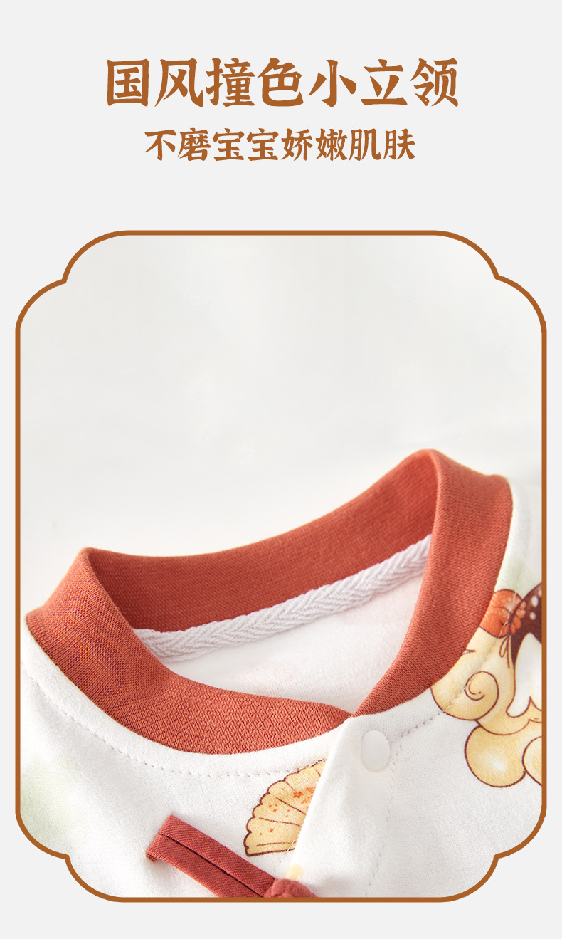 【国潮“汤圆小兔”偏襟连体衣】婴儿连体衣四季秋国风中式宝宝衣服纯棉新生儿哈衣外出新生儿衣服