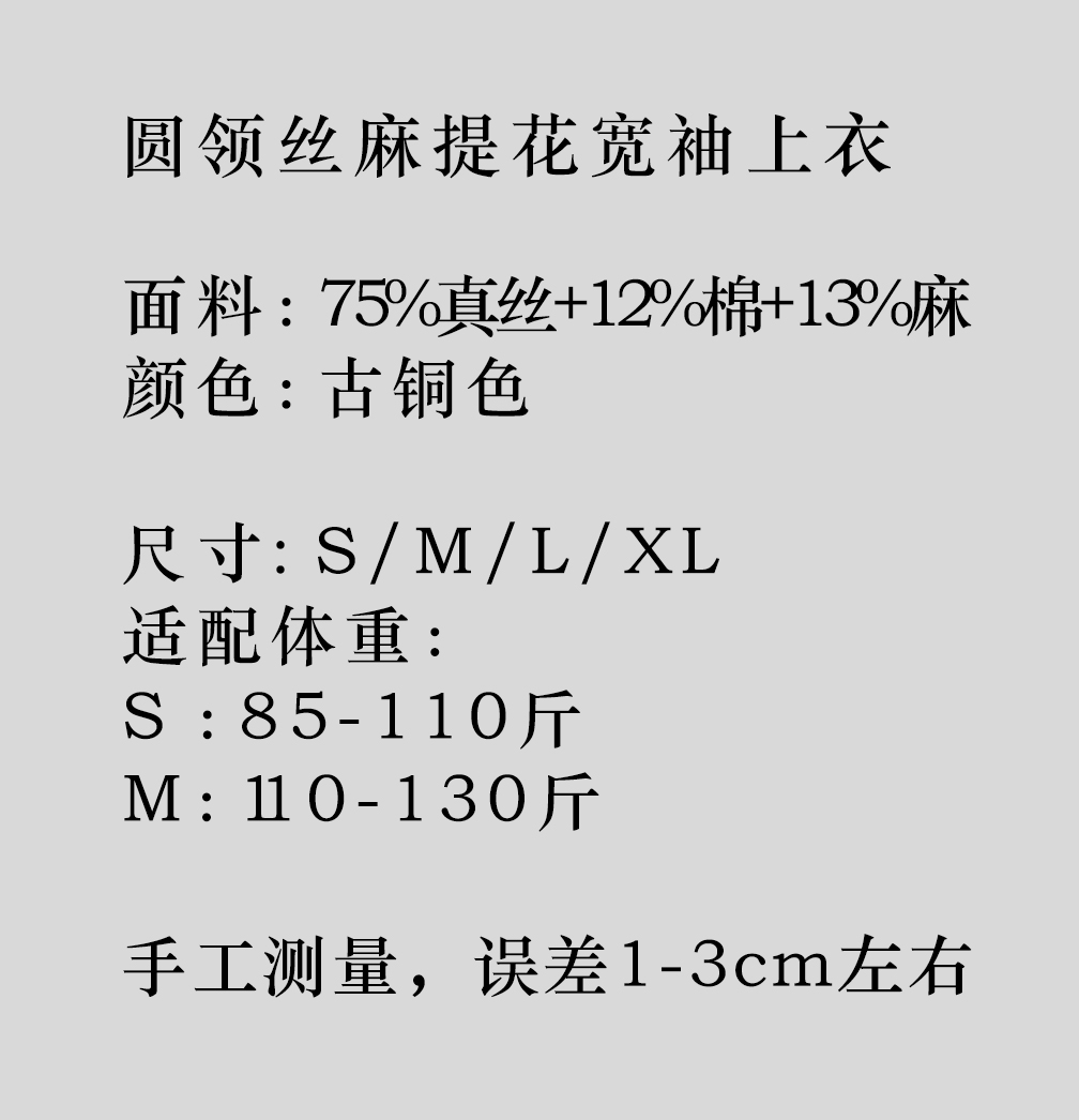 盛唐婧 |圆领团花丝麻提花宽袖上衣-古铜色
