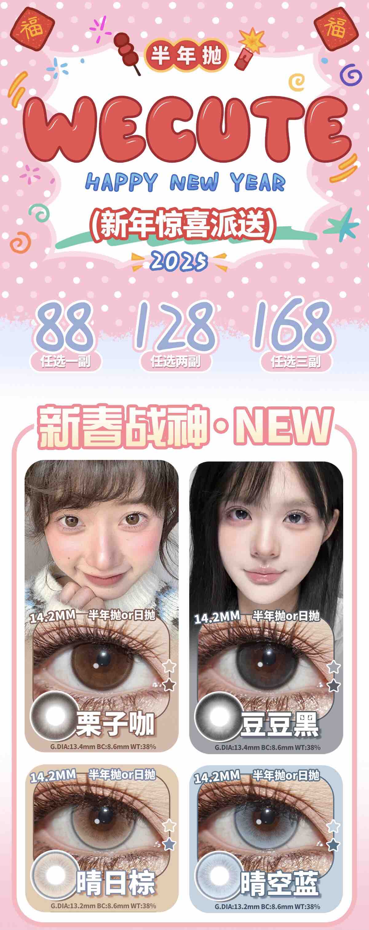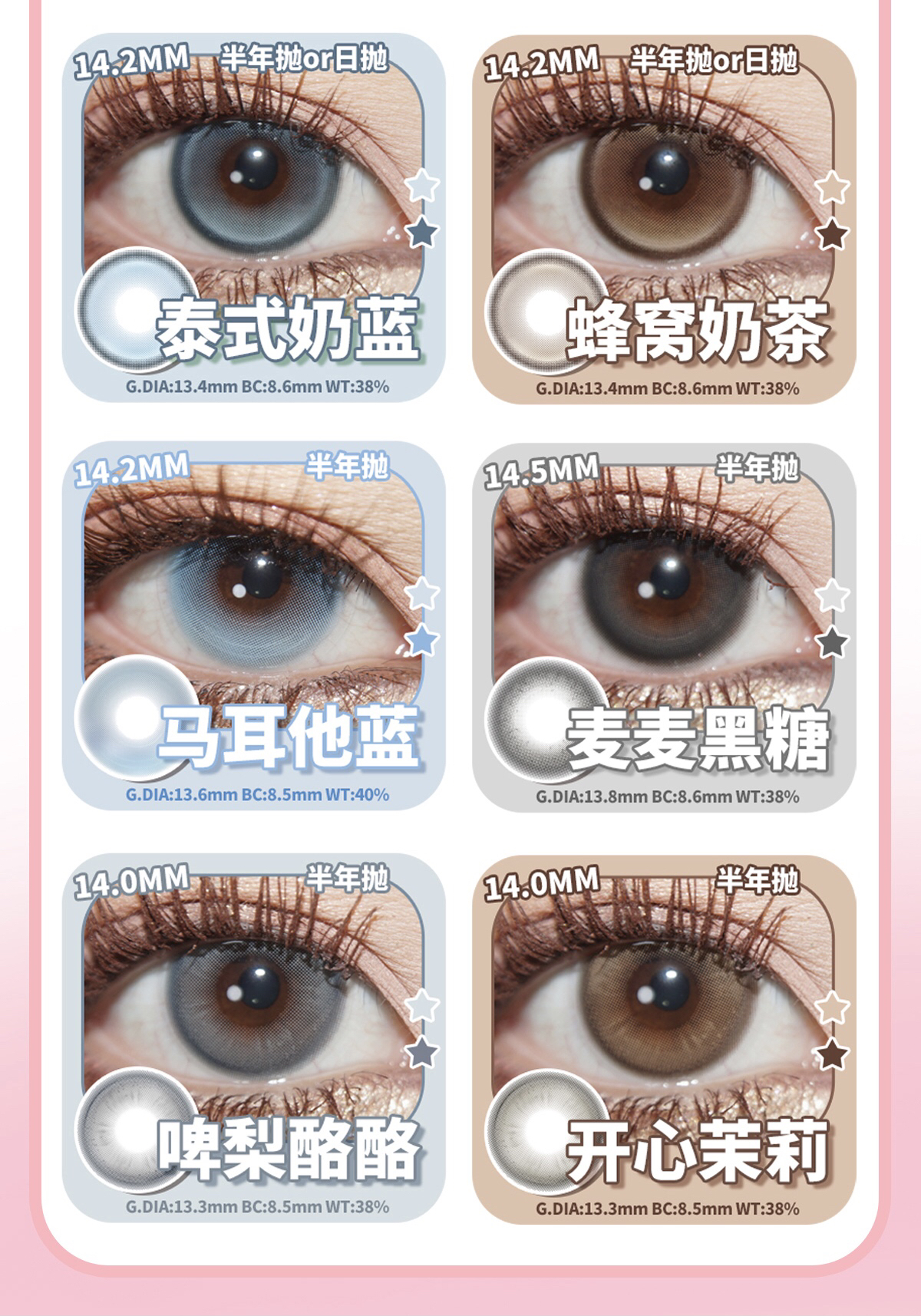 wecute 半年抛 落日奶酪 暮色棕 麦麦咖啡 蜂窝奶茶 冰透青椰 栗子咖 奶糖一副2片装