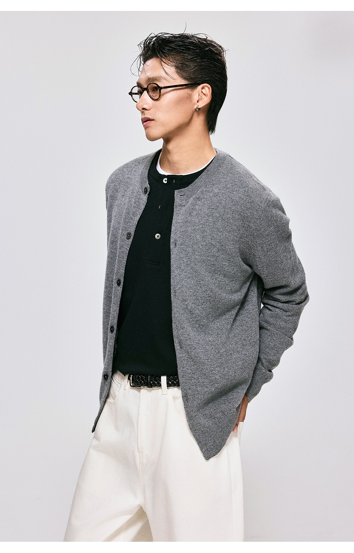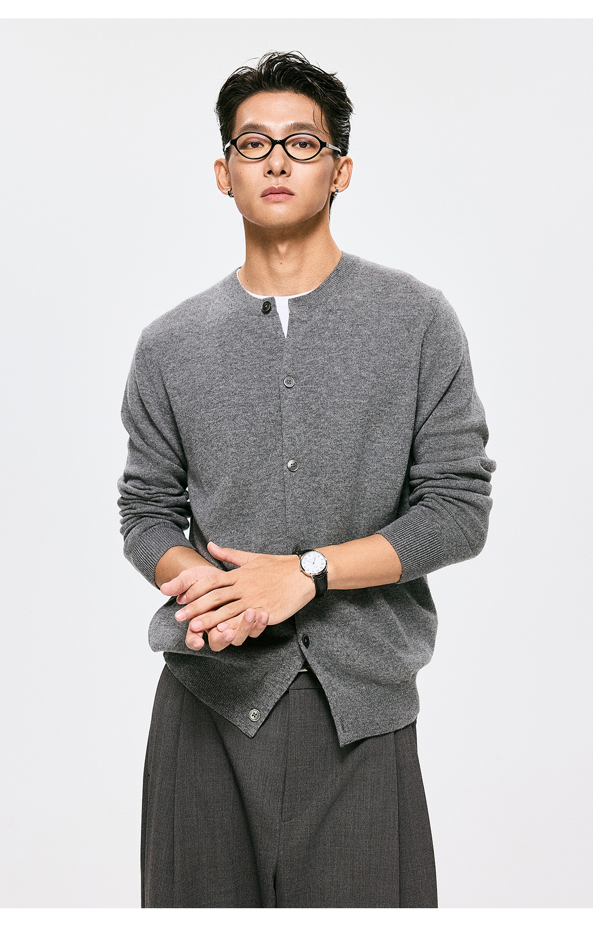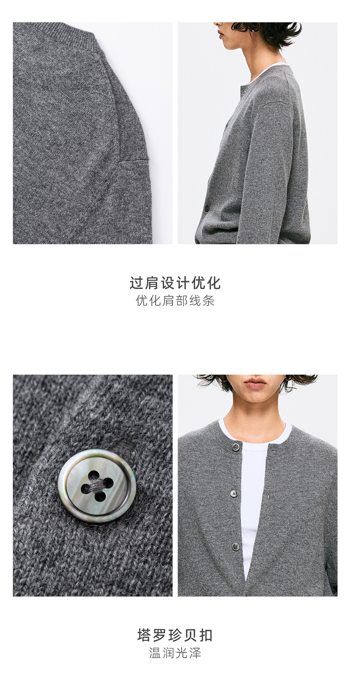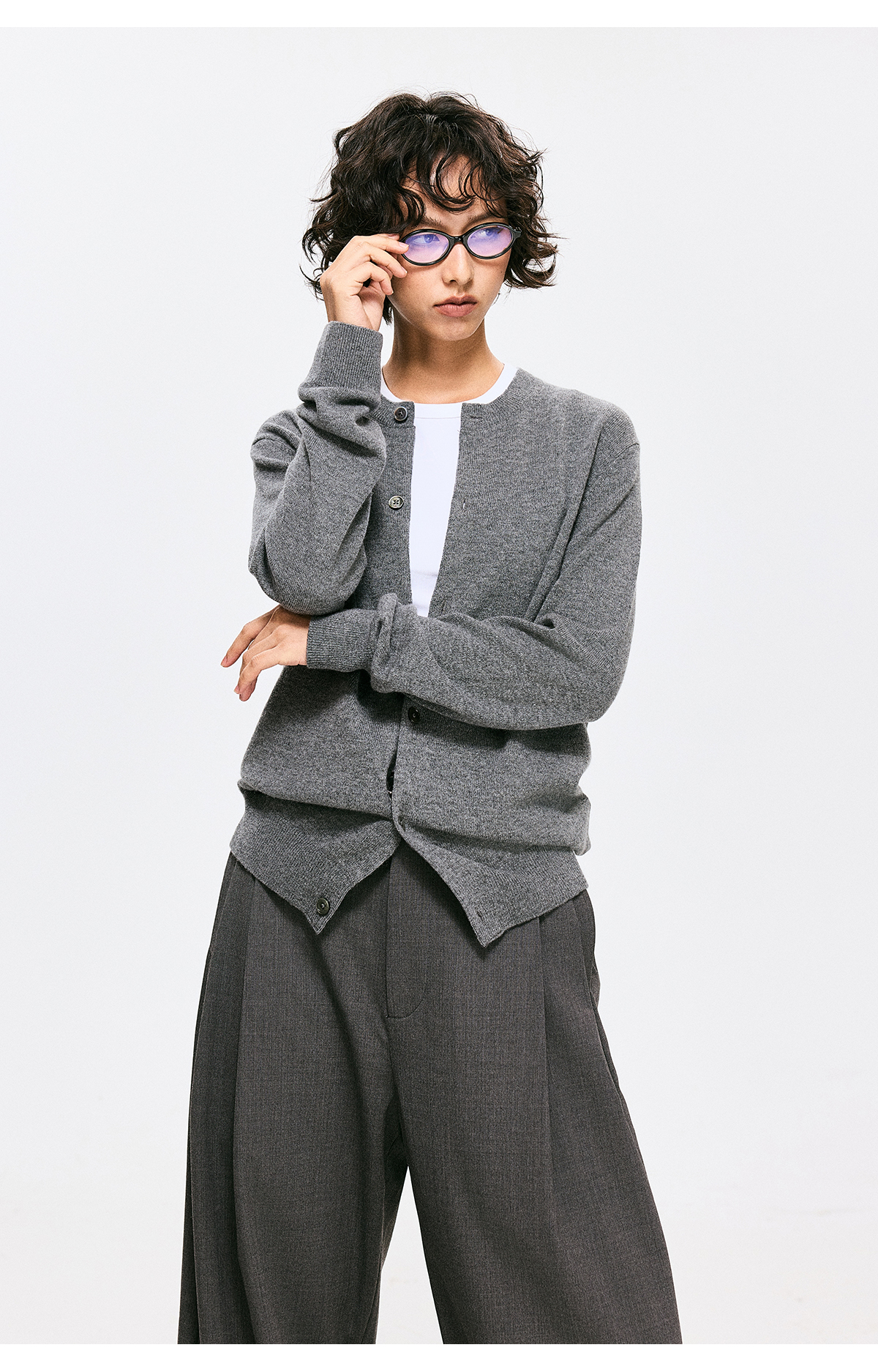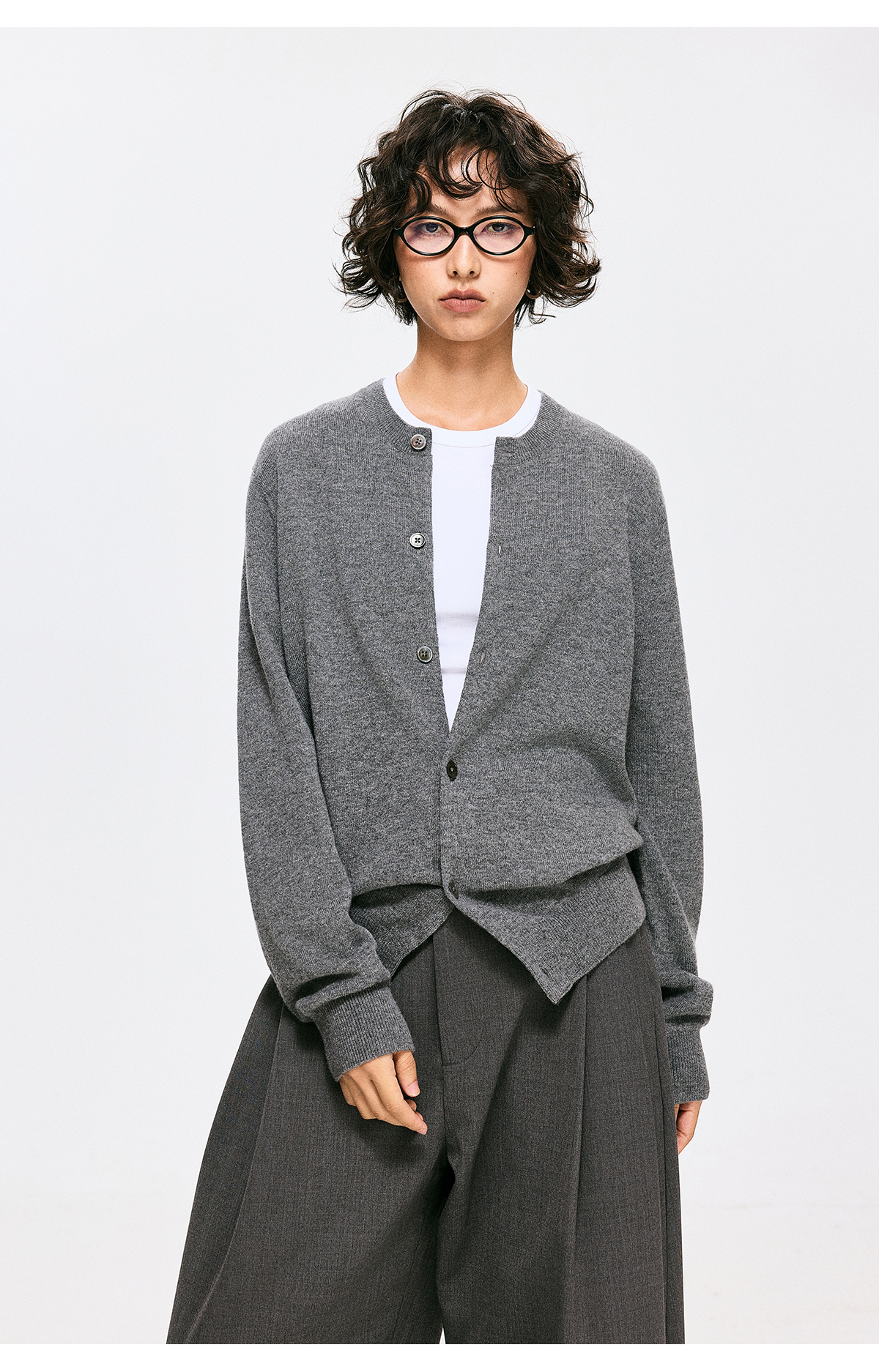 棉仓3671026002-【格雷象限】羊毛羊绒灰色圆领针织开衫